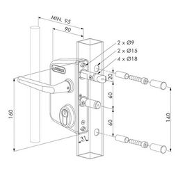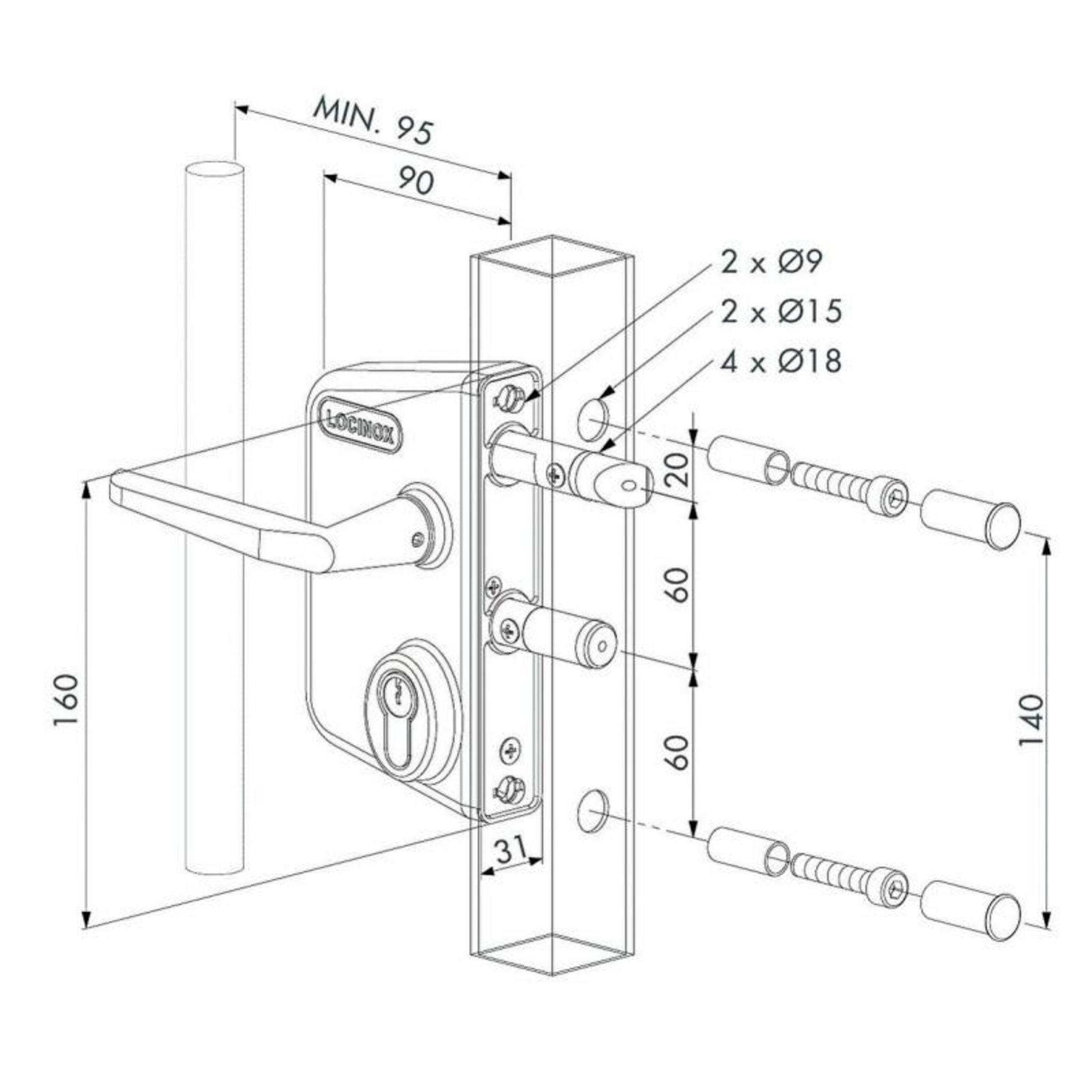 Serrure applique pour portail LAKQ40U2LV pour profil de 40 à 60mm LOCINOX LAKQ4040U2L6005VSZM