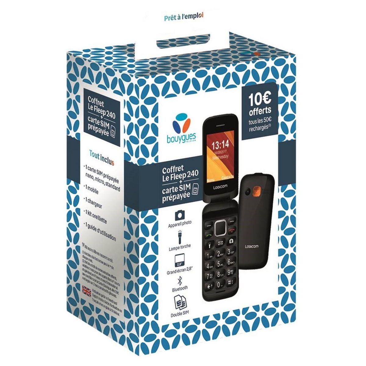 Coffret mobile Le Fleep 240 noir + 1 carte SIM prépayée + 1 chargeur + 1 kit oreillette + guide d'utilisation