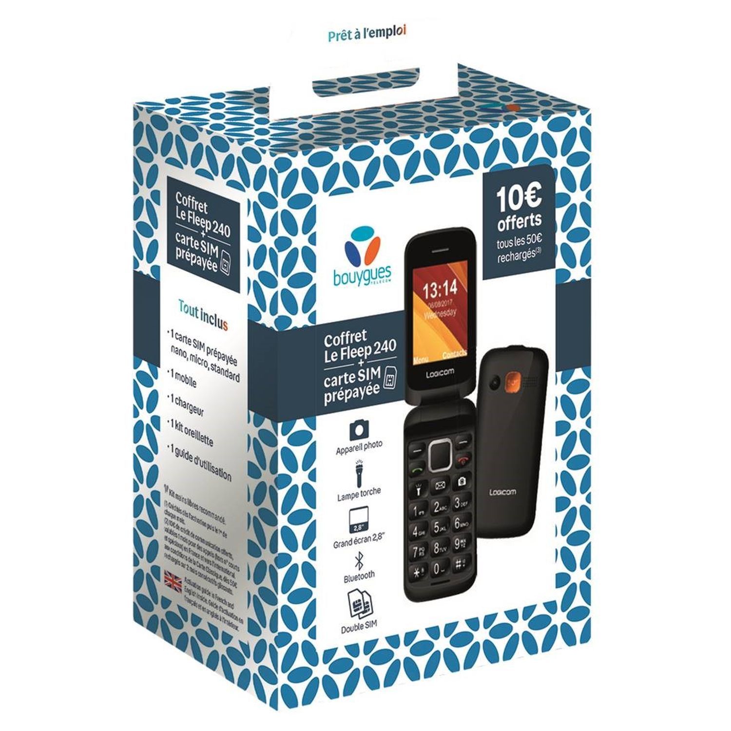 Découvrez le coffret Logicom avec le Fleep 240 chez Auchan, le coffre mobile se compose d'une carte SIM prépayée, un chargeur, un kit oreillette.