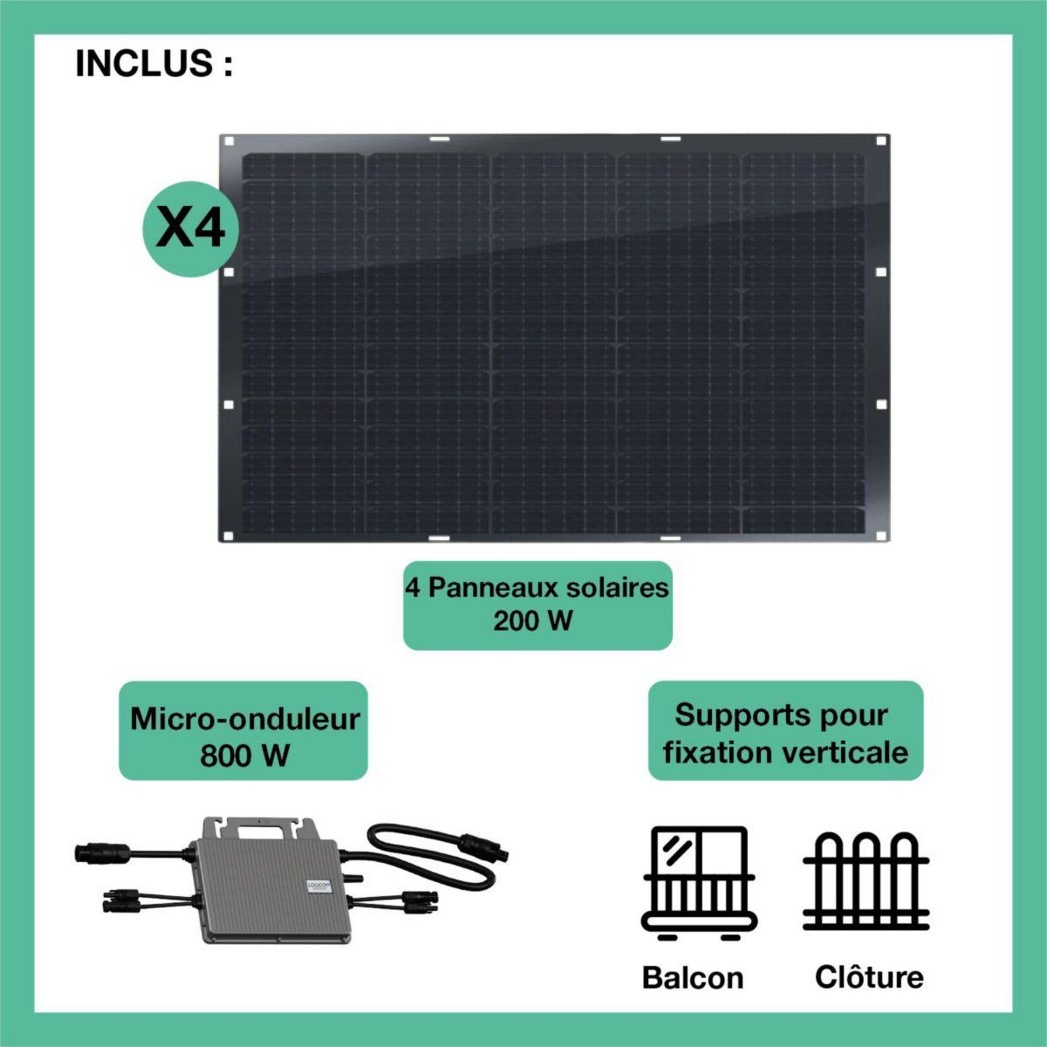 | Référence constructeur | 4x200W flex+Micro-Onduleur 800W+support | |