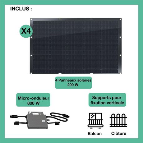 Panneau solaire 4x200W flex+Micro-Onduleur 800W+support