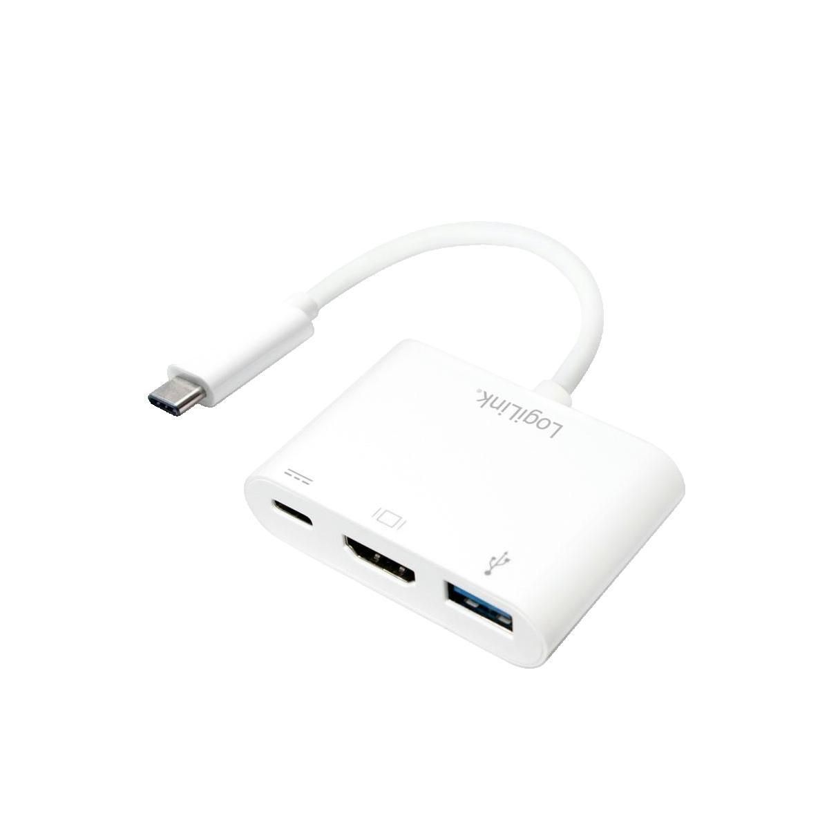 Adaptateur multiport LogiLink USB-C HDMI avec USB-A blanc 0.14 m