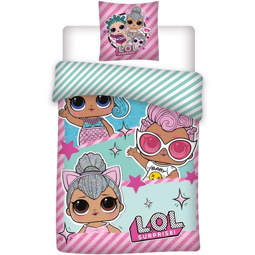 Parure housse de couette imprimée LOL surprise ! Parure en coton bio 140x200cm + 1 taie d'oreiller 65x65cm, douce, moelleuse et confortable. Le coton s'assouplit au lavage.