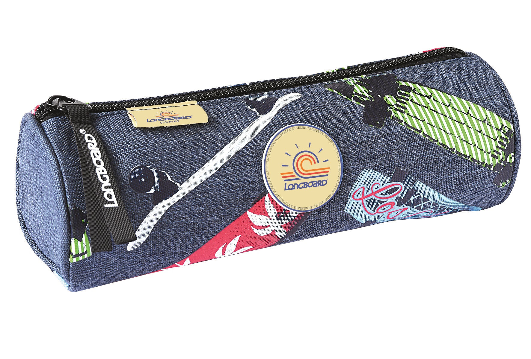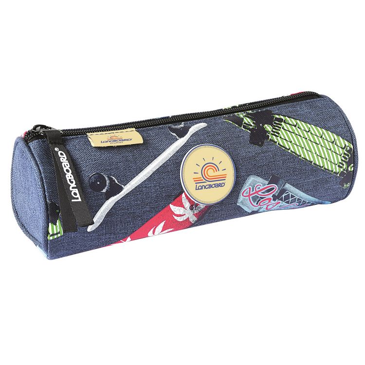 Trousse ronde Longboard gris motifs skates