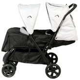 La poussette double Bambisol a été conçue pour des jumeaux ou des enfants d'âge rapprochés, avec une assise arrière complètement inclinable pour accueillir un bébé dès la naissance. Très maniable, légère (relativement aux produits de cette catégorie : 14,