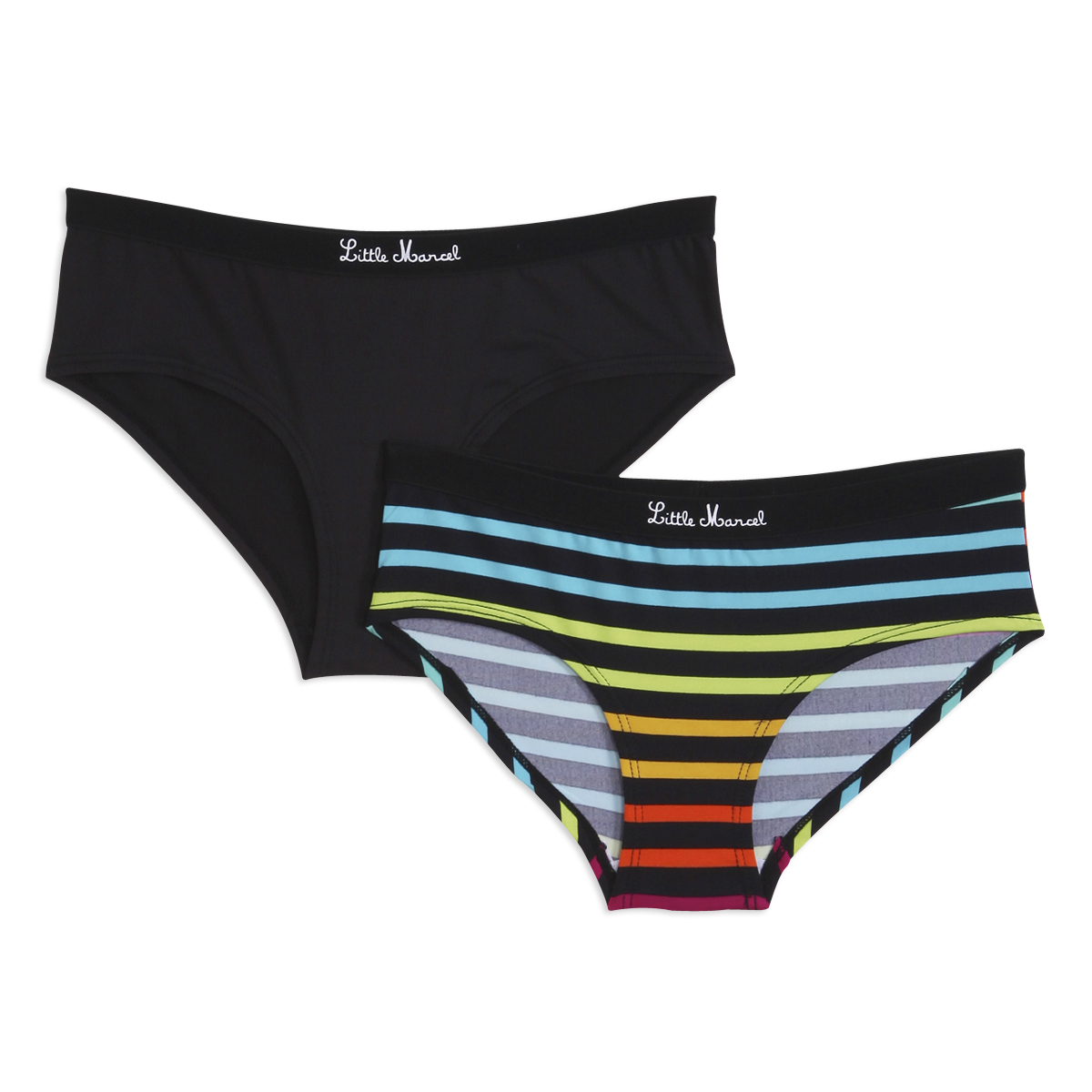 En savoir +Douceur, confort et matière légère pour ce lot de 2 boxers Little Marcel fille. Réalisés en microfibre agréable à porter. Taille élastiquée siglée. 1 uni et 1 avec les rayures colorées emblématiques de la marque. Fond doublé en coton. Lavables en machine à 30°.