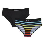 Douceur, confort et matière légère pour ce lot de 2 boxers Little Marcel fille. Réalisés en microfibre agréable à porter. Taille élastiquée siglée. 1 uni et 1 avec les rayures colorées emblématiques de la marque. Fond doublé en coton. Lavables en machine à 30°.