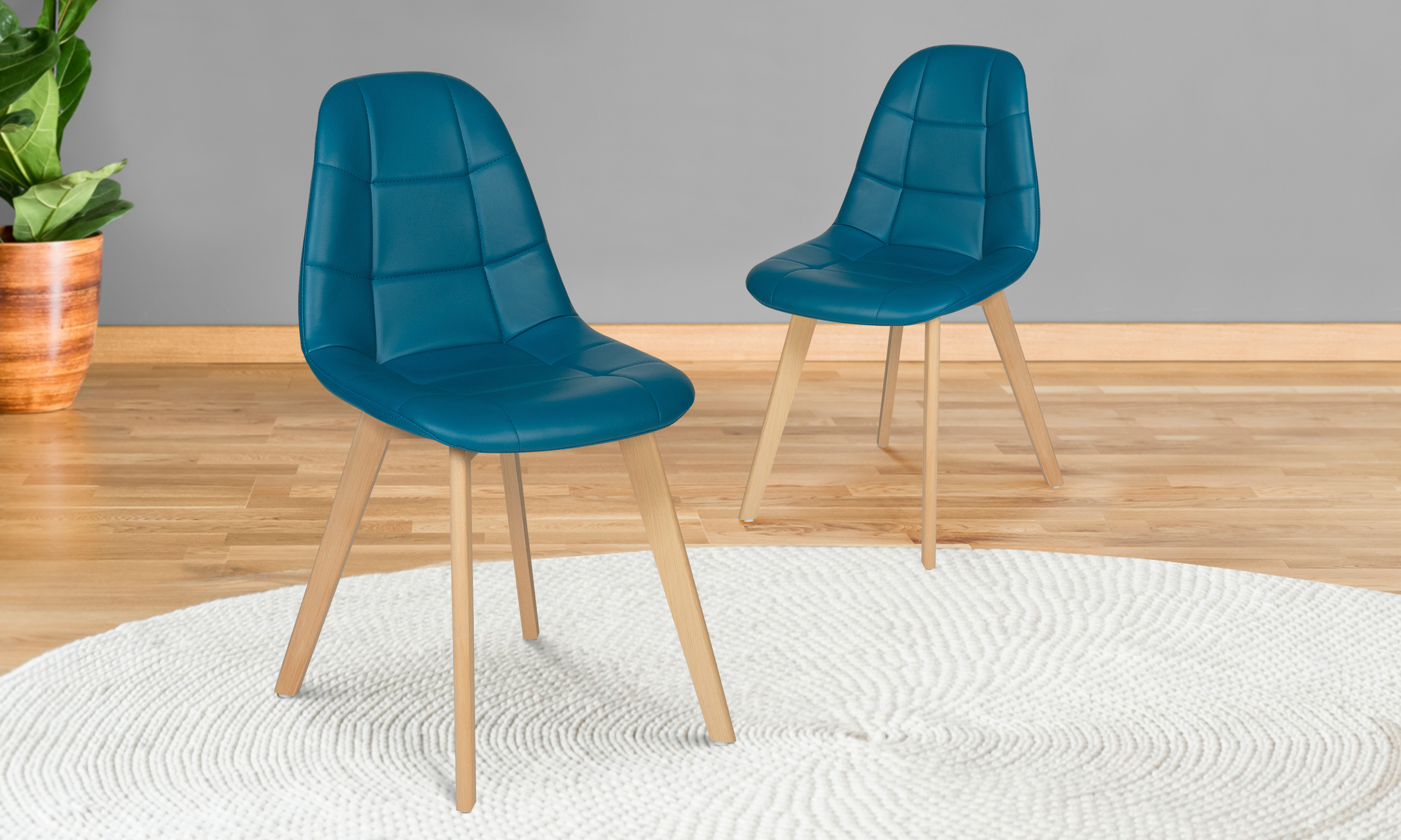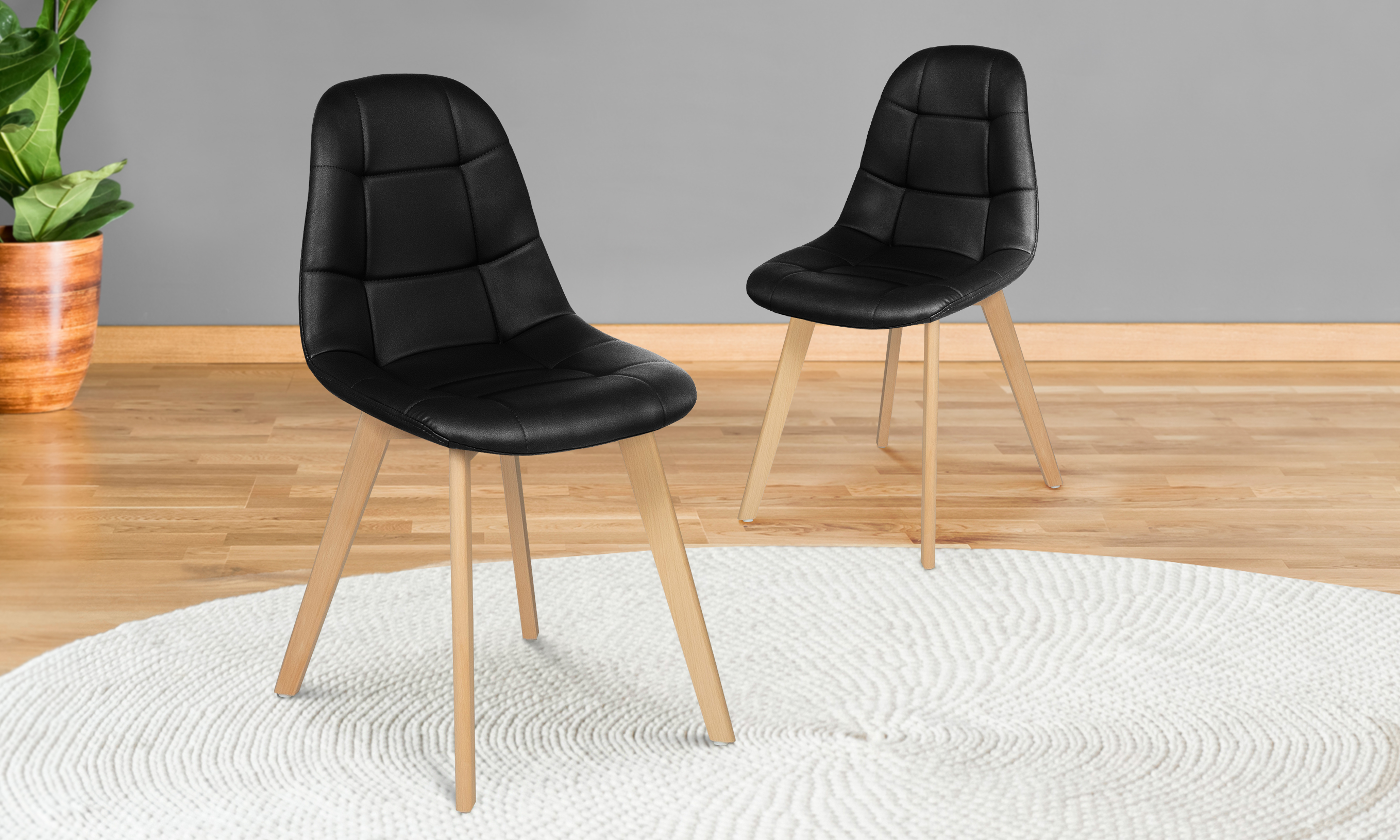 Lot de 2 chaises assise PU pieds bois massif CARLA