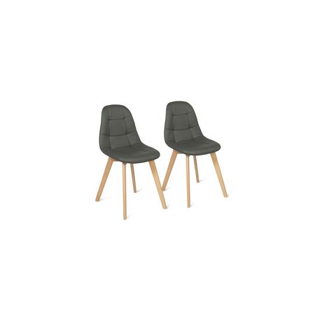 LOT DE 2 CHAISES _Dimensions générales: ( L x l x h ) 47x55x86cm _Hauteur d'assise: environ 49cm _Largeur d'assise: 46cm _Matériaux: _ -pieds en bois de hêtre _ -structure intérieure en polypropylène _ -revêtement en similicuir _Assise matelassée _Poids d'une chaise: 4kgs _A monter soi-même: oui _Visserie incluse: oui