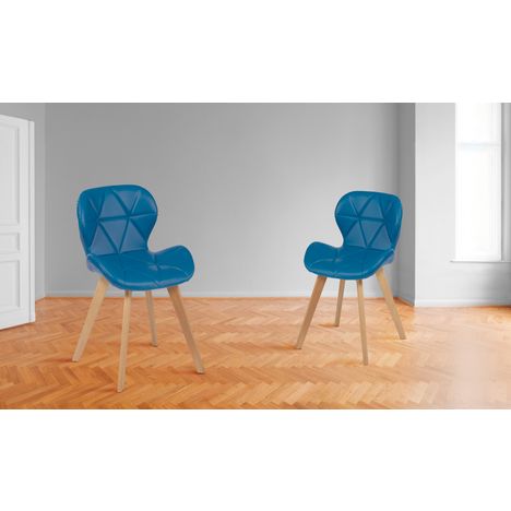 Lot de 2 chaises assise PU pieds bois massif NICKY