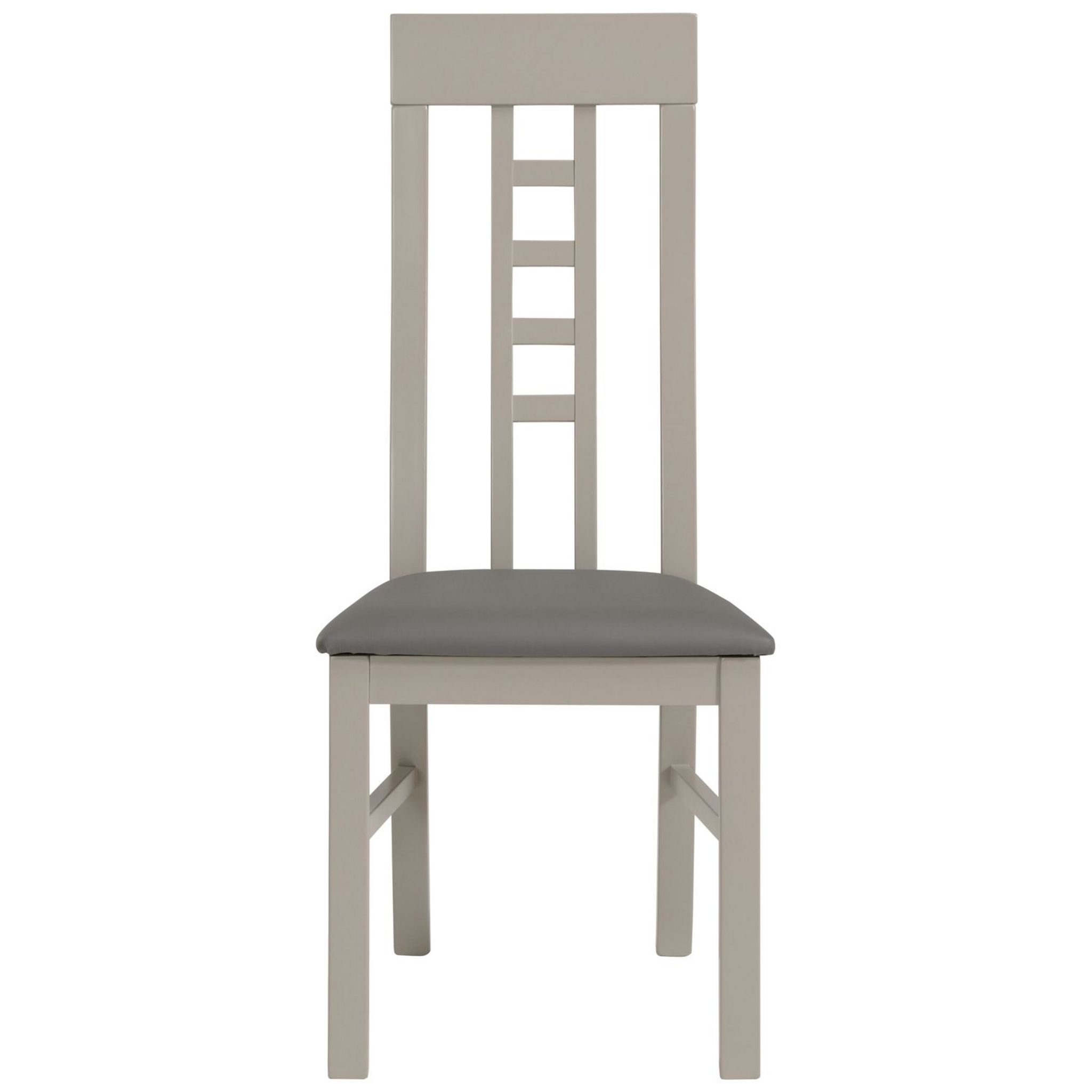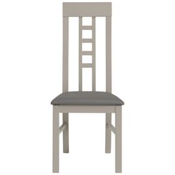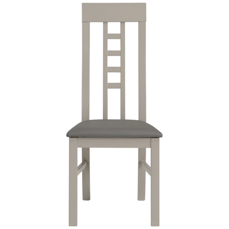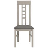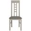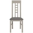 Structure hêtre massif revêtue laque polyuréthane grise, assise en mousse densité 35kg/m3 recouvert PU gris