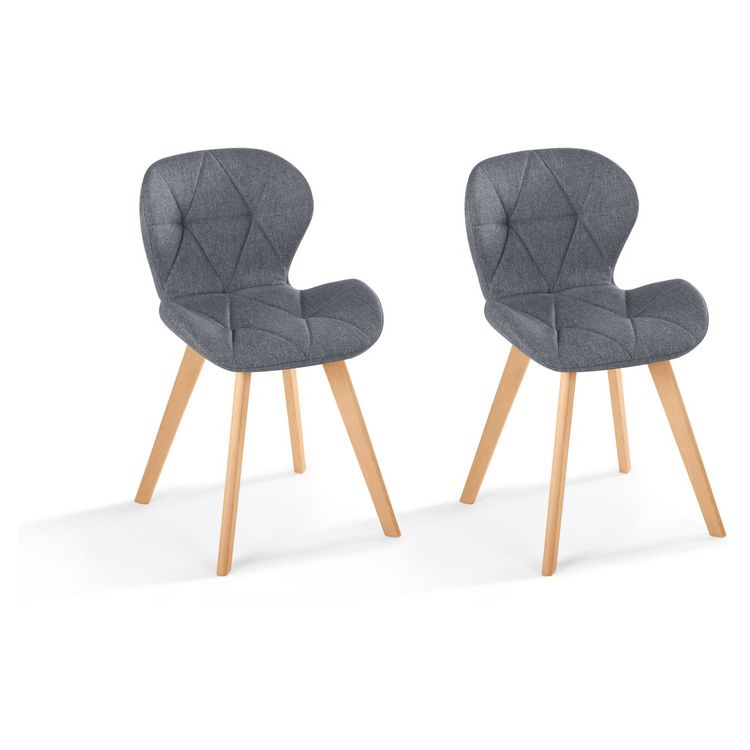 Lot de 2 chaises en tissu style scandinave pieds bois massif GAYA