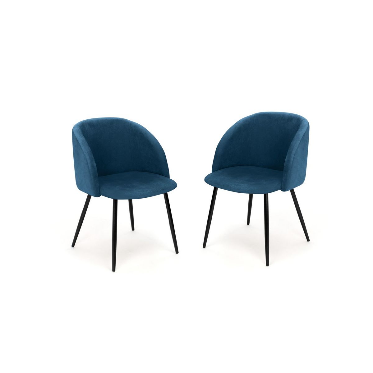 Matériaux : pieds en métal noir et assise en velours Coloris : bleu canard Dimensions assise : (L) 48 x (l) 49 x (H) 43 cm Hauteur dossier : 40 cm