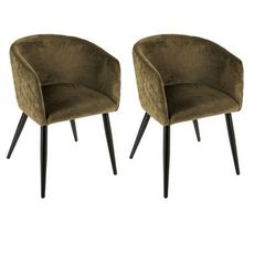 Lot de 2 Fauteuils Design Velours Marlo 76cm Kaki