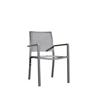Ce fauteuil est idéal pour déjeuner confortablement en plein air ! Conçu en textilène grisé, ce fauteuil de 55x58x85cm s'associe parfaitement avec le salon de jardin LUPIN ou MYOSOTIS pour agrandir l'ensemble.