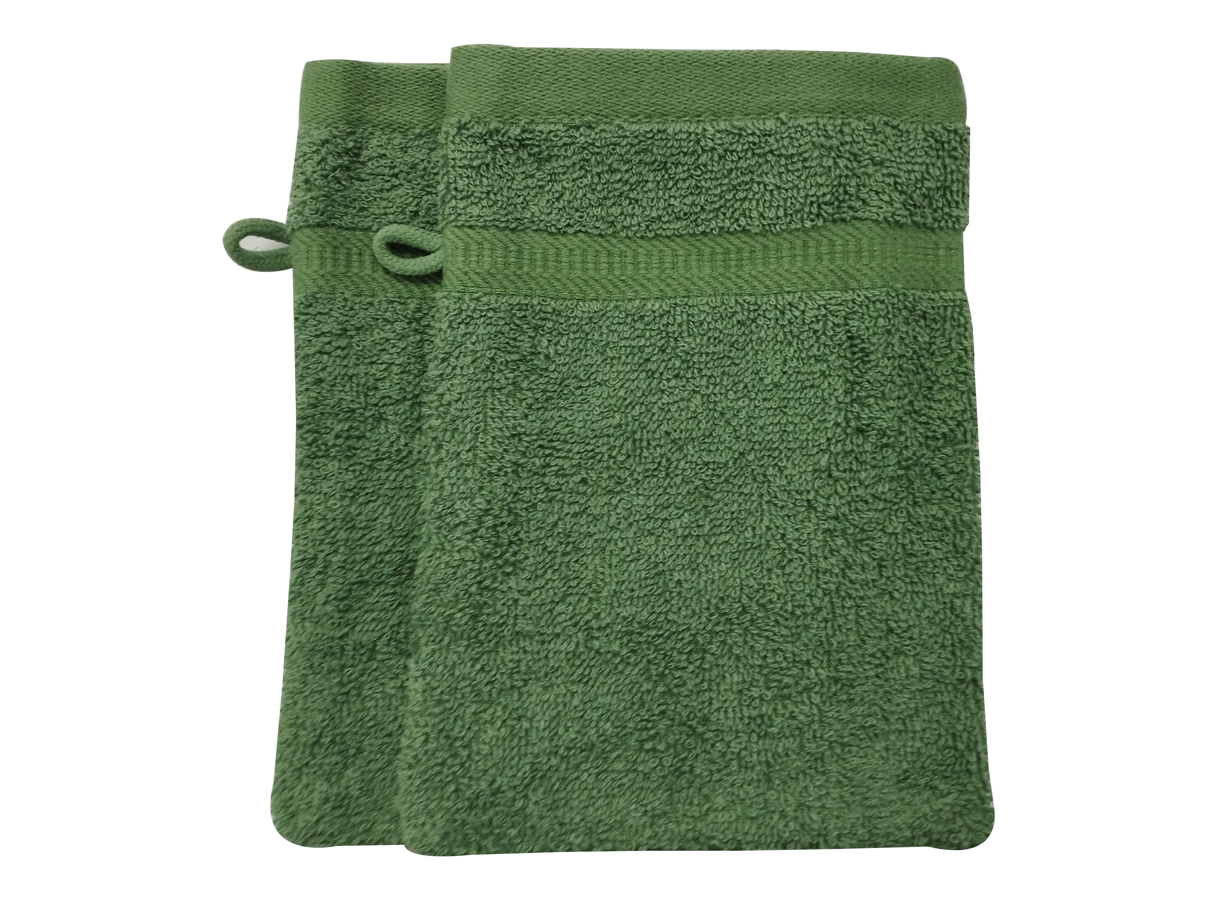 Lot de 2 gants de toilette uni en coton 450 g/m²