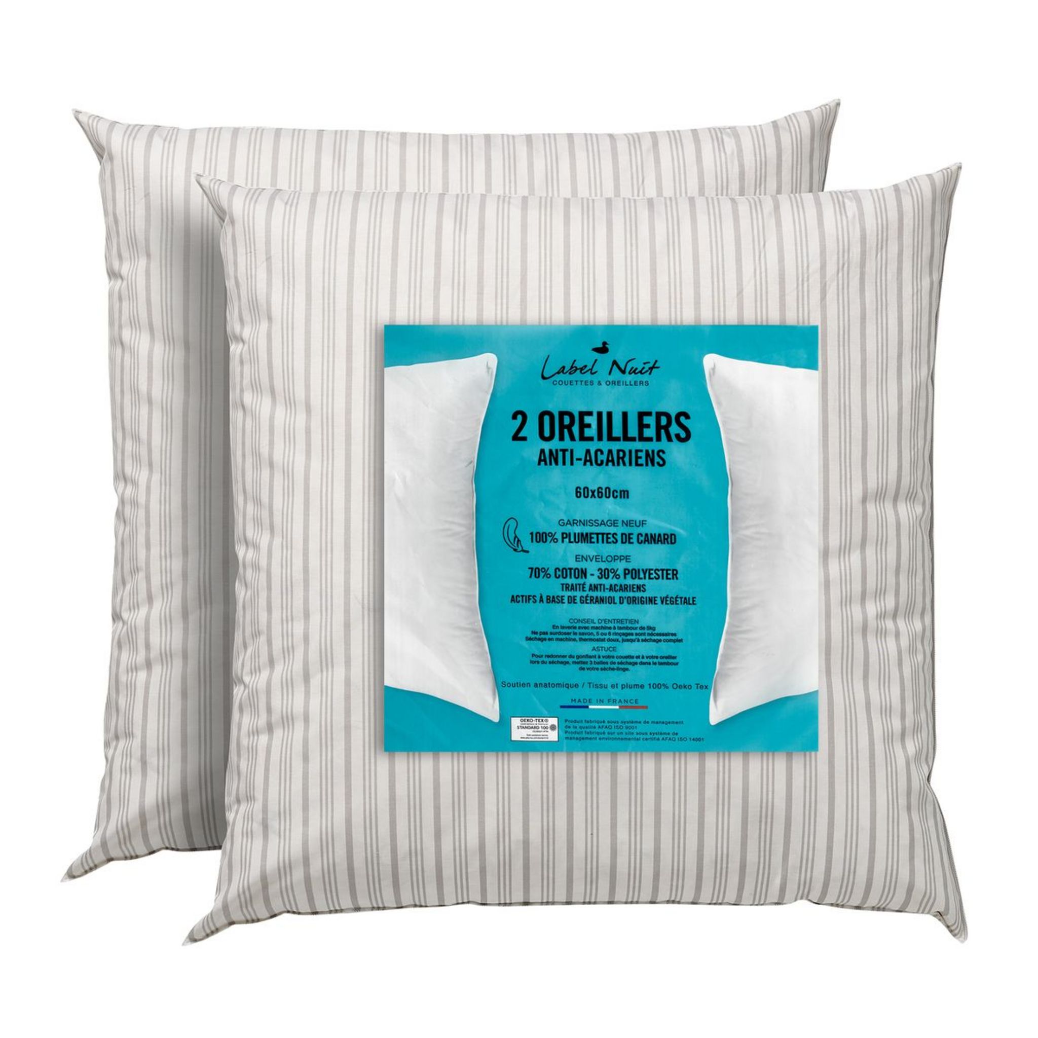 Lot de 2 oreillers naturels confort ferme en plumettes neuves et polycoton traité anti acariens