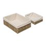 Informations Techniques : Dimensions : Taille 1 : L. 28 x l. 20 x H. 10 cm Taille 2 : L. 32 x l. 23,5 x H. 11,5 cm Matières : Roseau & Polyester Spécificités : Pratique & Tendance Lot de 2 Paniers de Rangement Forme Rectangulaire Textile 100% Coton Poids : 0,974 kg Couleur : Naturel