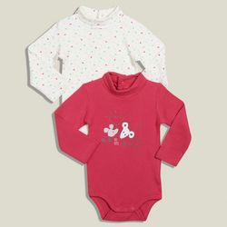 Craquez pour ce lot de 2 bodies tee-shirts pour bébé ! 100% coton, c'est plus doux et confortable pour bébé. Col roulé. Manches longues. Ouverture pressionnée à mi-dos. Pressions à la base. Ce lot de 2 bodies tee-shirts bébé fille est lavable en machine à 40°.