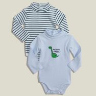 Ils sont tellement adorables que ce serait dommage de les cacher : le lot de 2 bodies tee-shirts ! 100% coton, doux et confortables. Pratique : pressions à mi-dos et à l'entrejambe pour les enfiler en un clin d’œil. Col roulé. Manches longues. Motifs fantaisie. Ce lot de 2 bodies tee-shi