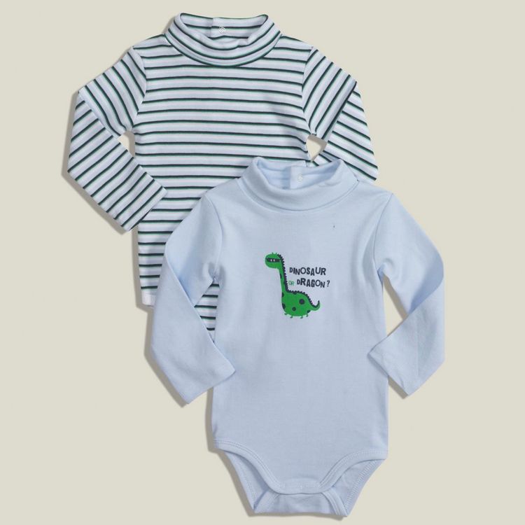 En savoir +Ils sont tellement adorables que ce serait dommage de les cacher : le lot de 2 bodies tee-shirts ! 100% coton, doux et confortables. Pratique : pressions à mi-dos et à l'entrejambe pour les enfiler en un clin d’œil. Col roulé. Manches longues. Motifs fantaisie. Ce lot de 2 bodies tee-shirts bébé garçon est lavable en machine à 40°.
