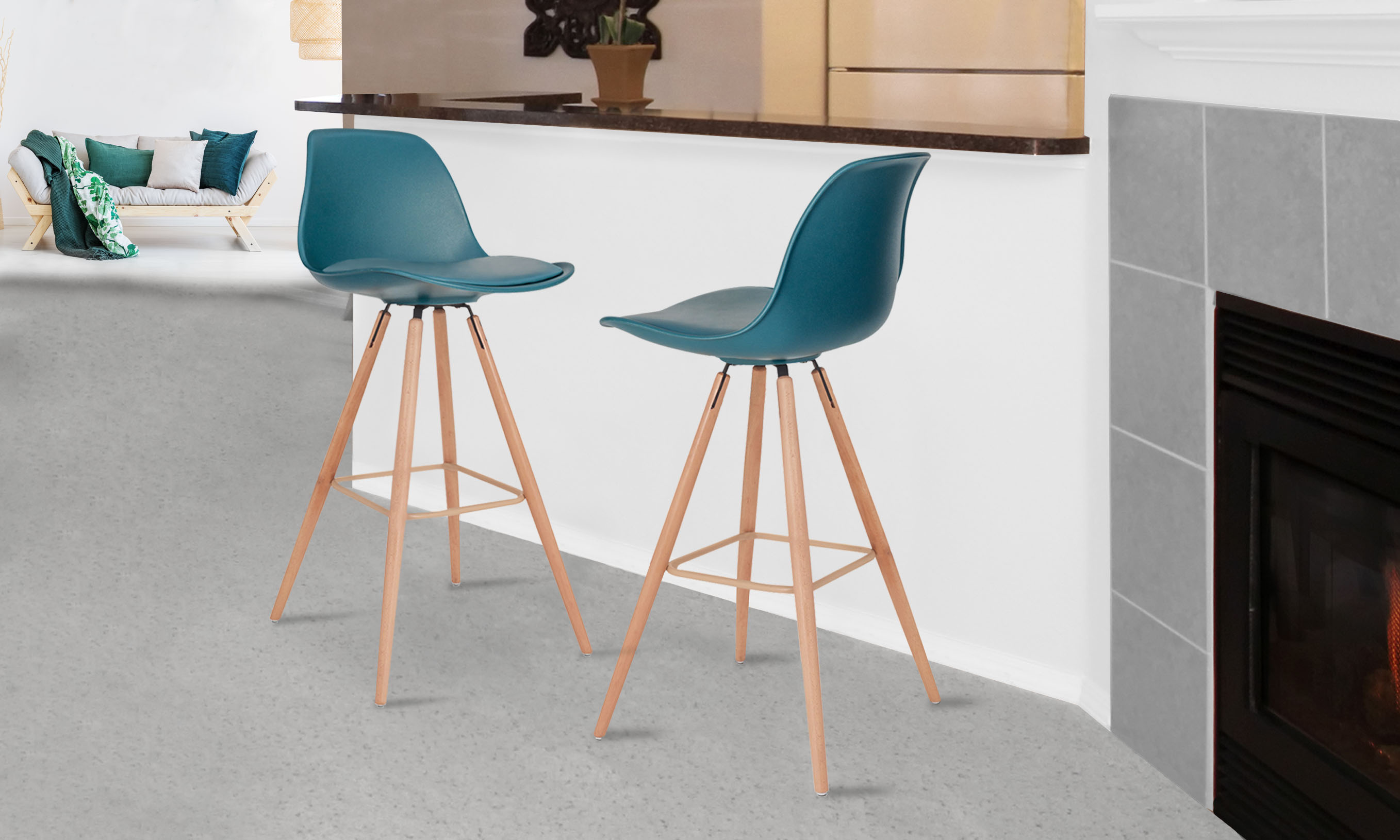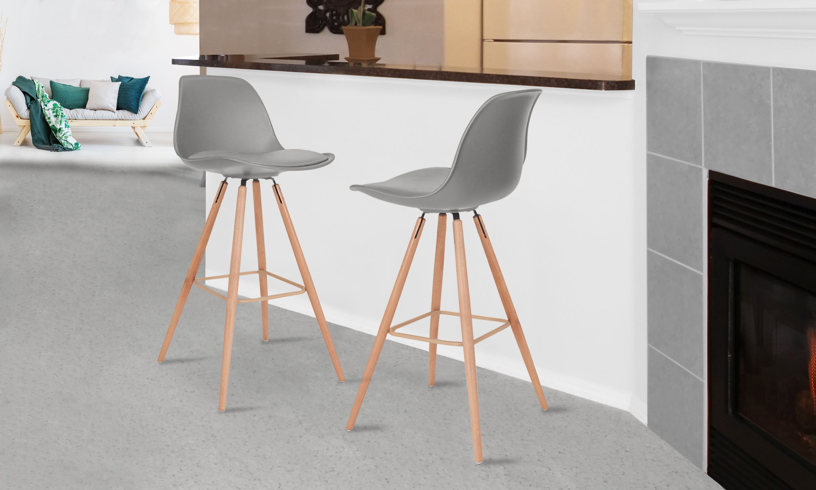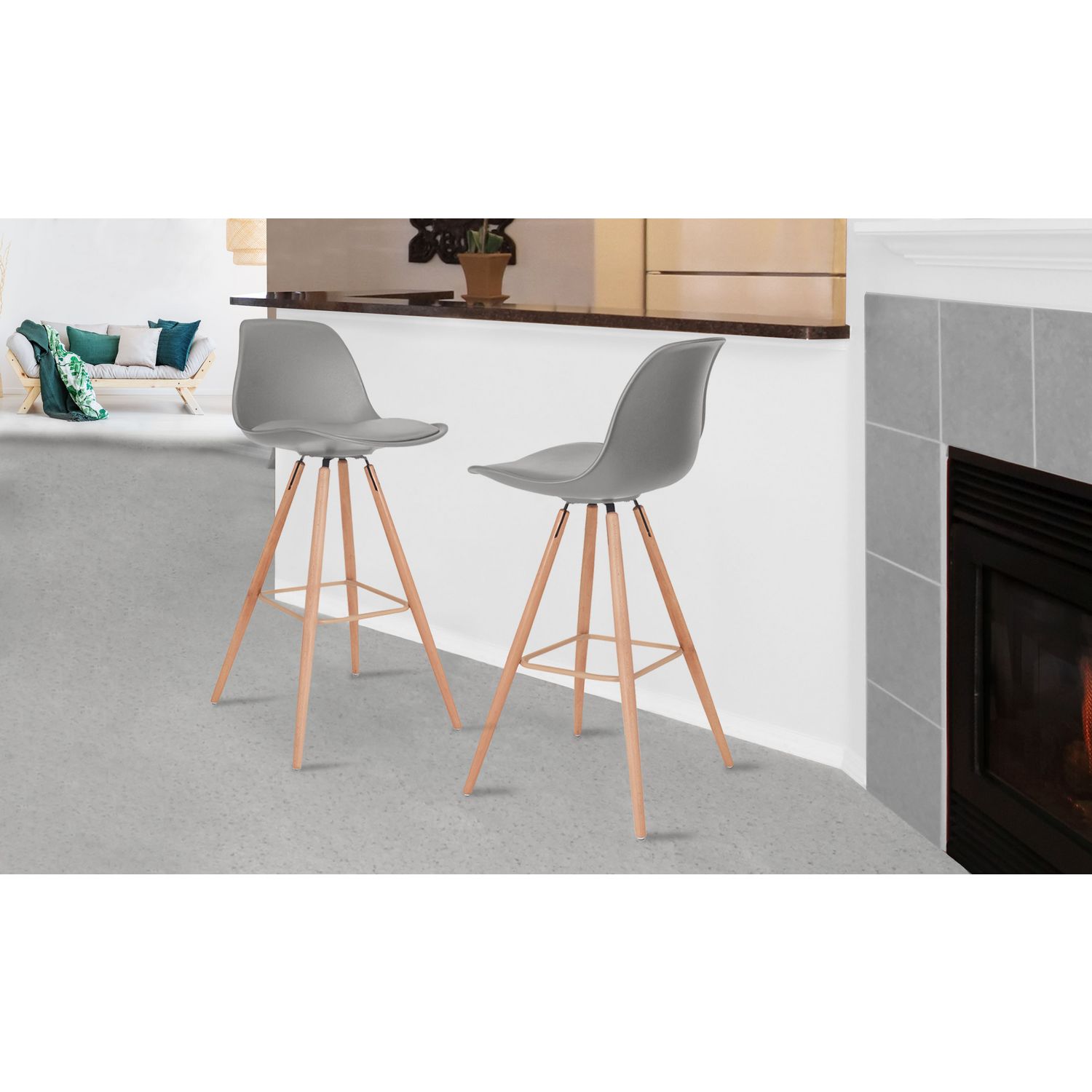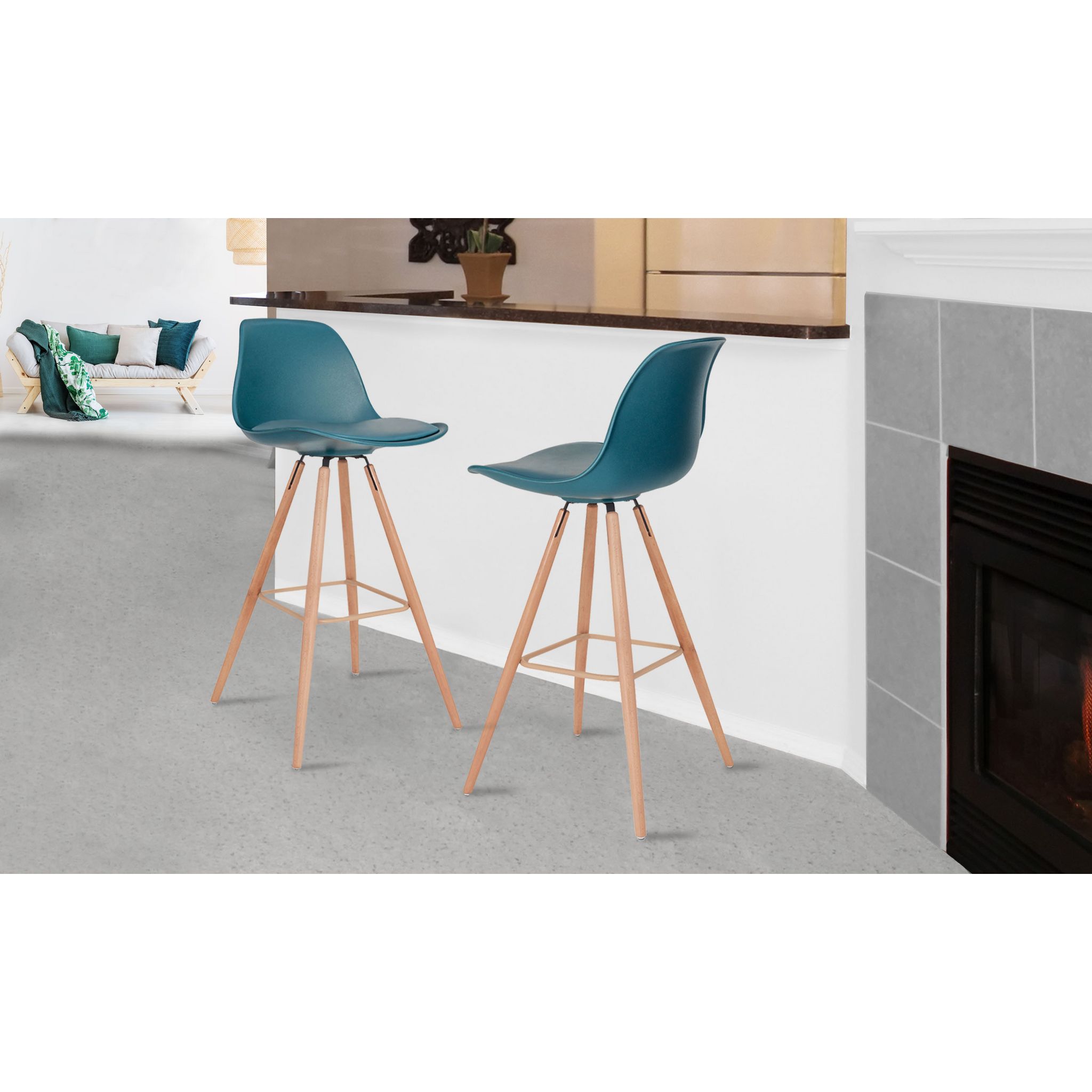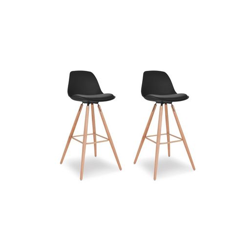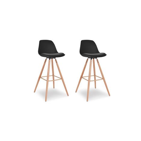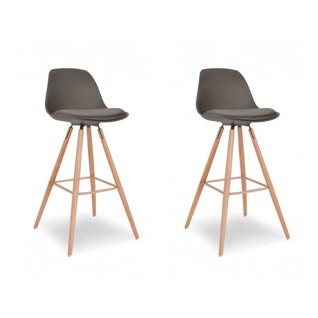 Lot de 2 tabourets de bar pieds bois massif BORGEN