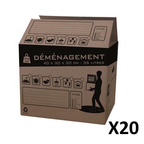 Un déménagement de prévu ? Vous avez besoin de transporter une partie de votre vie dans votre nouveau chez-vous et recherchez des cartons solides pour mener à bien cette mission ? Ne cherchez plus ! Ce lot de 20 cartons de déménagement 36L sera idéal. Pouvant supporter une charge jusqu'à 20kg et équ