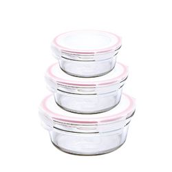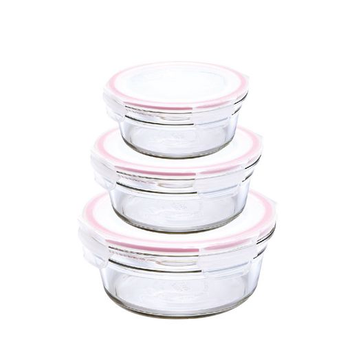 Ce lot de 3 boîtes rondes en verre vous permettra de conserver vos aliments facilement ! Ces boîtes sont utilisables directement au four et micro-ondes et ne se colorent pas. 3 boîtes 450ml, 850ml et 1480ml.
