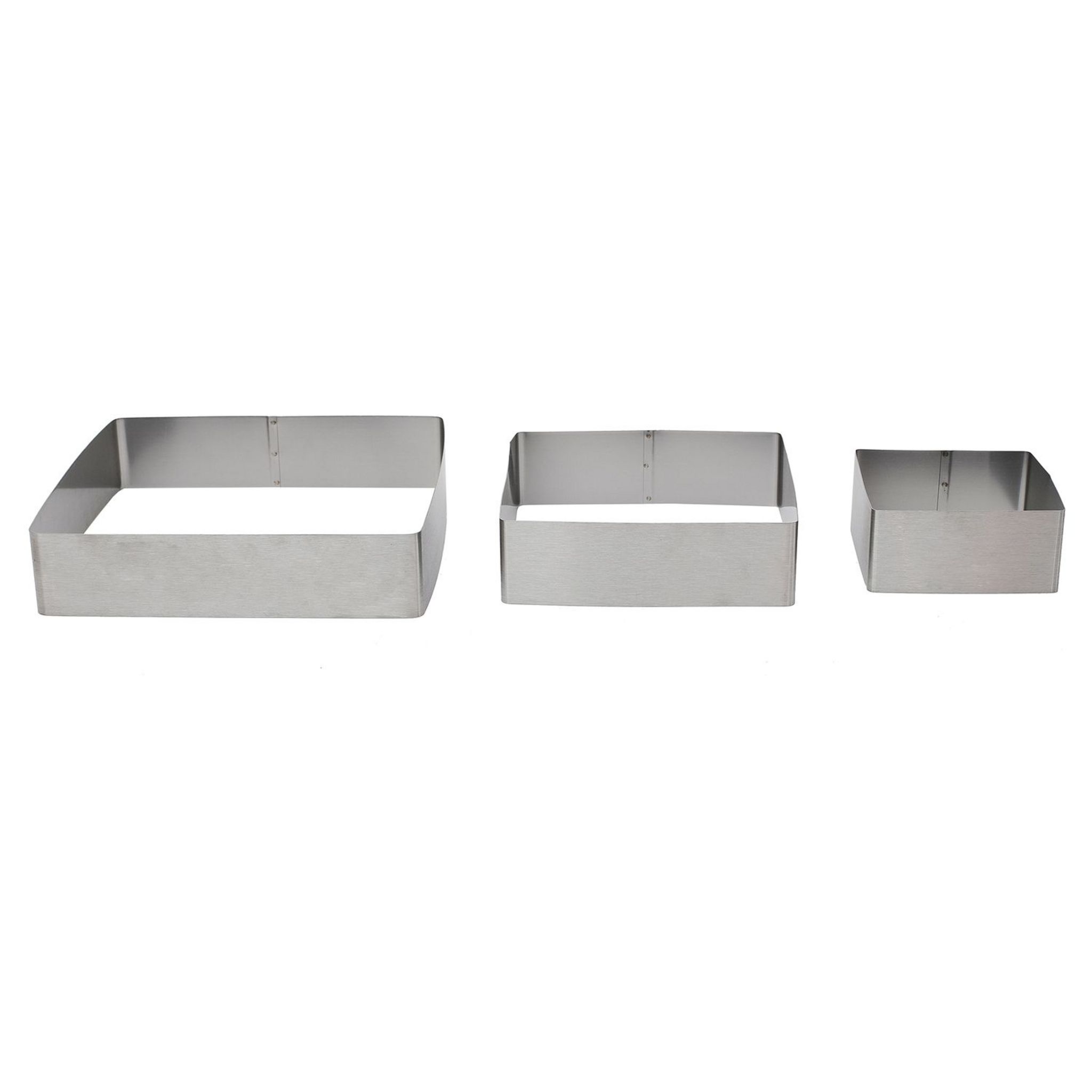 Métal - Acier Inoxydable ARGENT 10x4.5x0.5 3 CADRES PATISSIERS Montez vos gâteaux et entremets dignes des plus grands chefs pâtissiers à l'aide de ce lot de 3 cadres de différentes tailles ! Ces modèles carrés vous offriront une finition soignée.