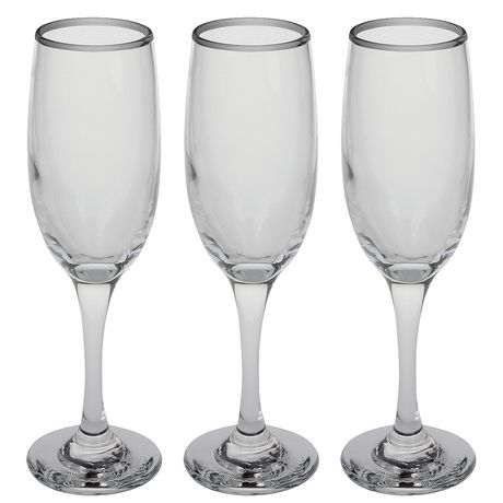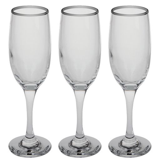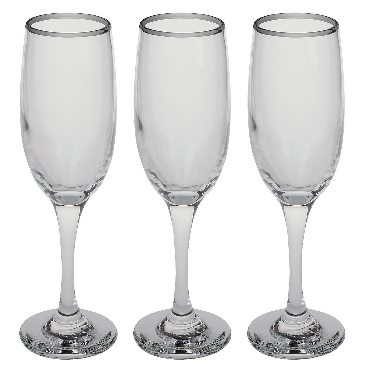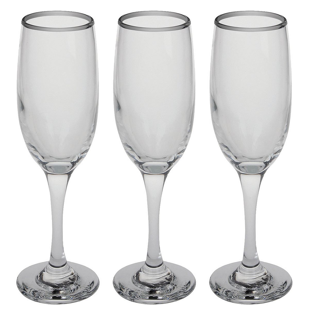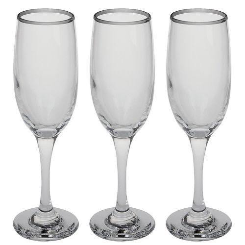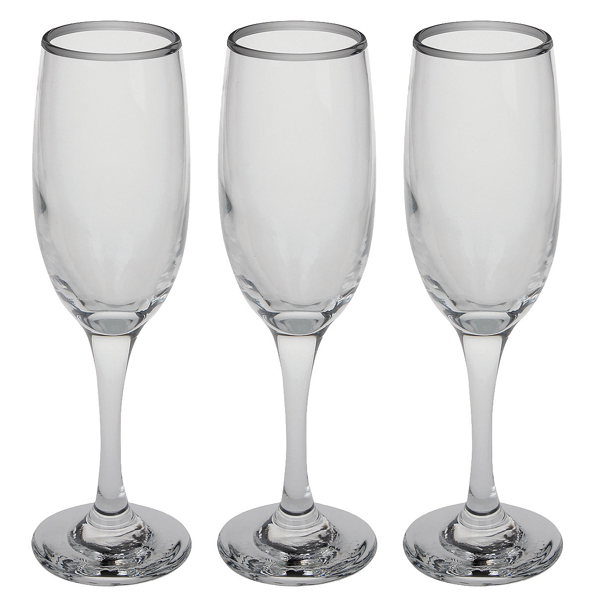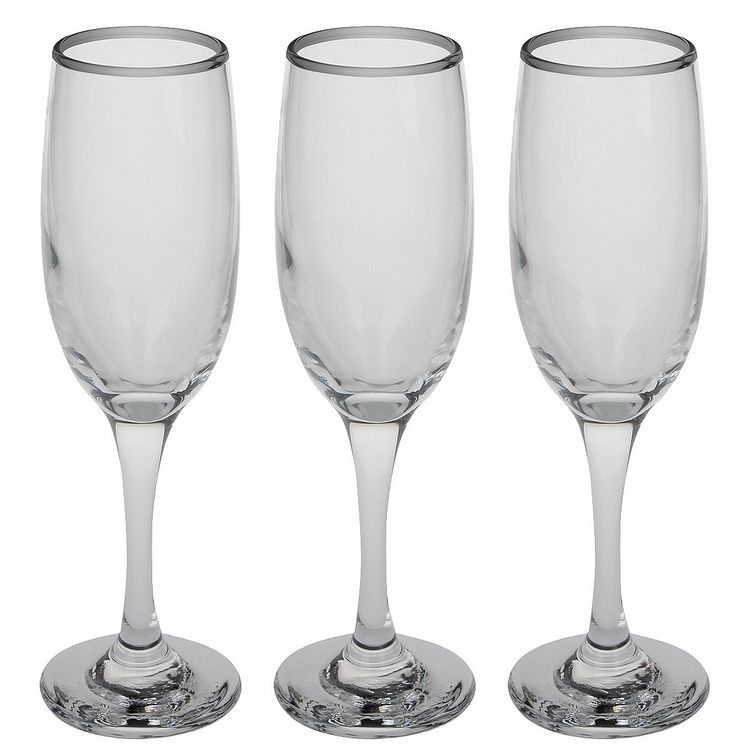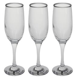 Découvrez ce lot de 3 flûtes à champagne de 18 cl avec filet argent au design sobre et épuré. Non compatible lave-vaisselle.