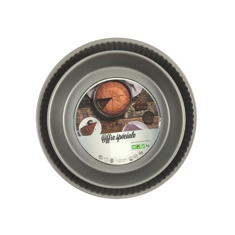Lot composé d'un moule à manqué 26cm et d'un moule à tarte 28 en acier antiadhérent afin d'éviter que les aliments restent accroché.