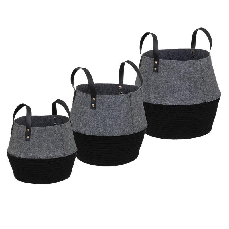 Lot de 3 Paniers Déco Deep Soul 43cm Noir & Gris