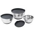Lot de 3 Saladiers / bols mélangeurs en acier inoxydable avec couvercle et bec verseur ALVA