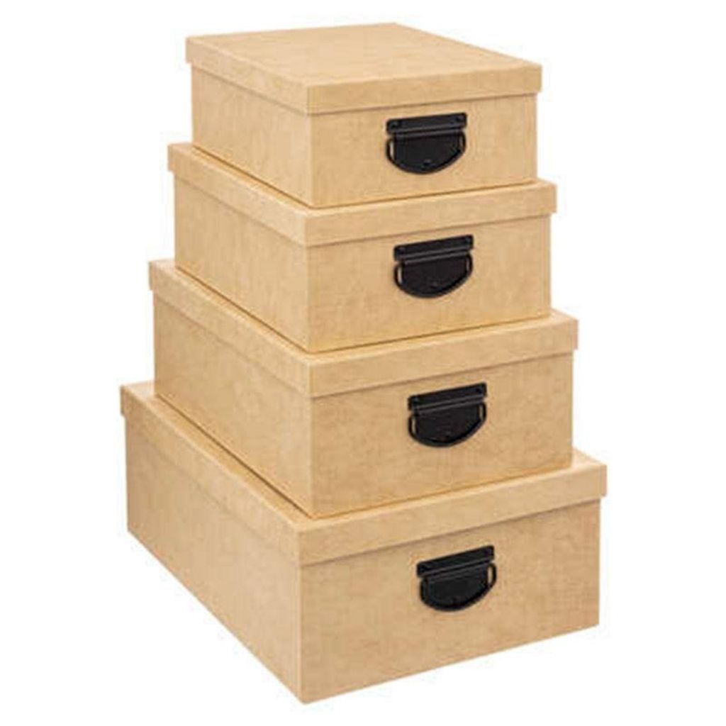 Informations Techniques : Dimensions : L. 30 x l. 39,5 x H. 16 cm Matière : Carton Spécificités : Pratique & Astucieux Lot de 4 Boîtes de Rangement Forme Rectangulaire Revêtement effet Jute Poids : 2,045 kg Couleur : Naturel