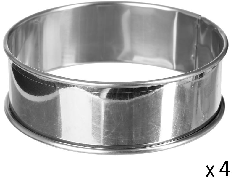 Réalisez de délicieuses pâtisserie grâce à ce lot de 4 cercles à tartelettes en inox. Dimensions: diamètre 9 cm x hauteur 2.90 cm. Bénéficiez d'un entretien facile grâce à la compatibilité au lave vaisselle.