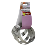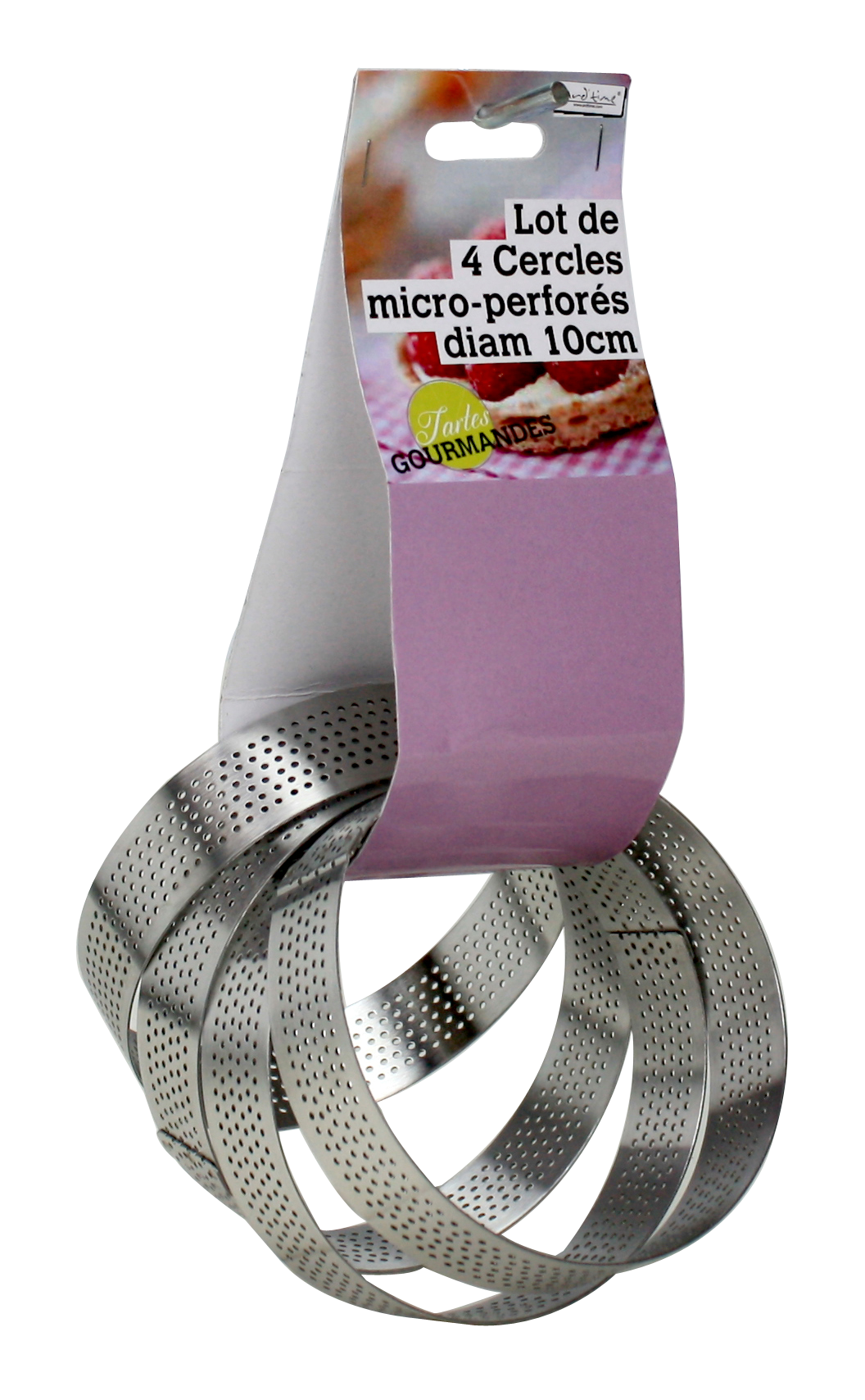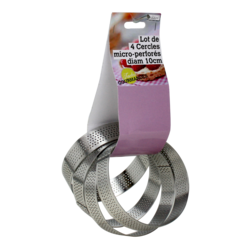 Réalisez de délicieuses pâtisseries grâce à ce lot de 4 cercles en acier carbone micro perforés de diamètre 10 cm. Bénéficiez d'un entretien facile grâce à la compatibilité au lave vaisselle.
