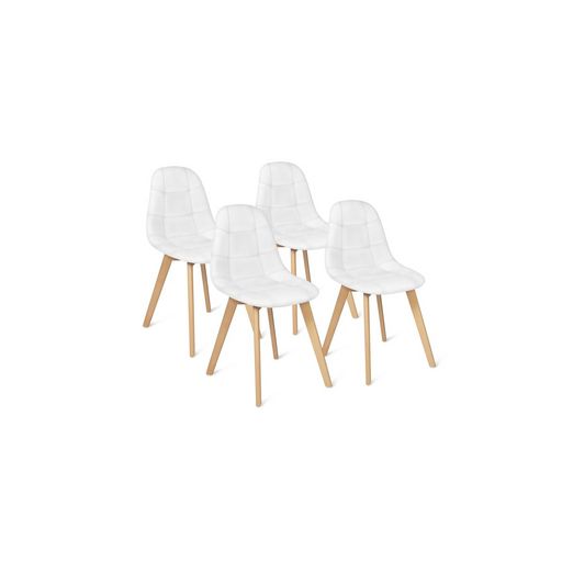 LOT DE 4 CHAISES _Dimensions générales ( L x l x h ) : 47x55x86cm _Hauteur d'assise: environ 49cm _Largeur d'assise: 46cm _Matériaux: _ -pieds en bois de hêtre _ -structure intérieure en polypropylène _ -revêtement en similicuir _Assise matelassée _Poids d'une chaise: 4kgs _A monter soi-même: oui _Visserie incluse: oui