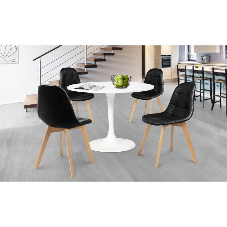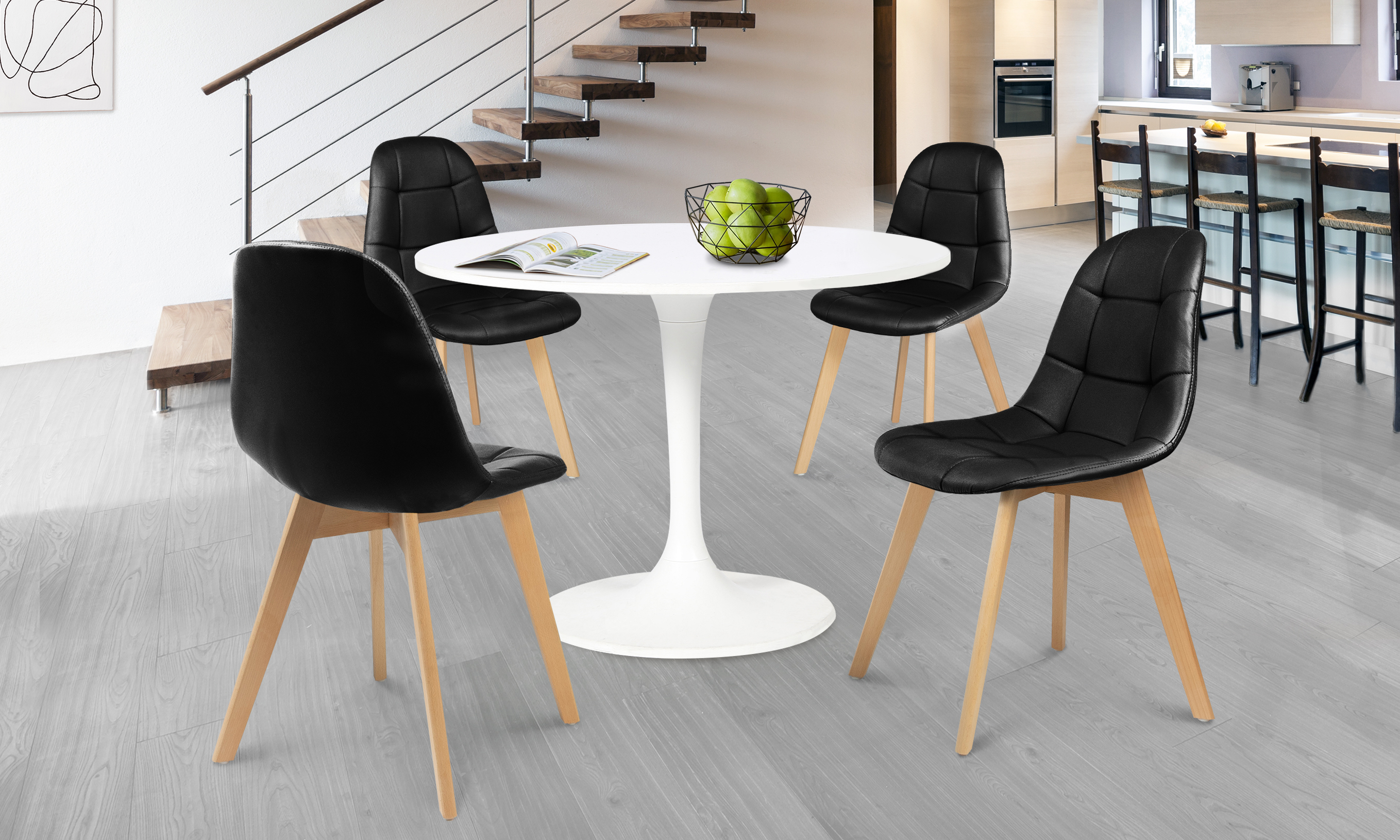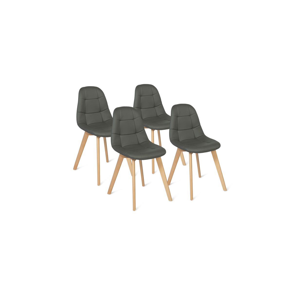 Lot de 4 chaises assise PU pieds bois massif CARLA