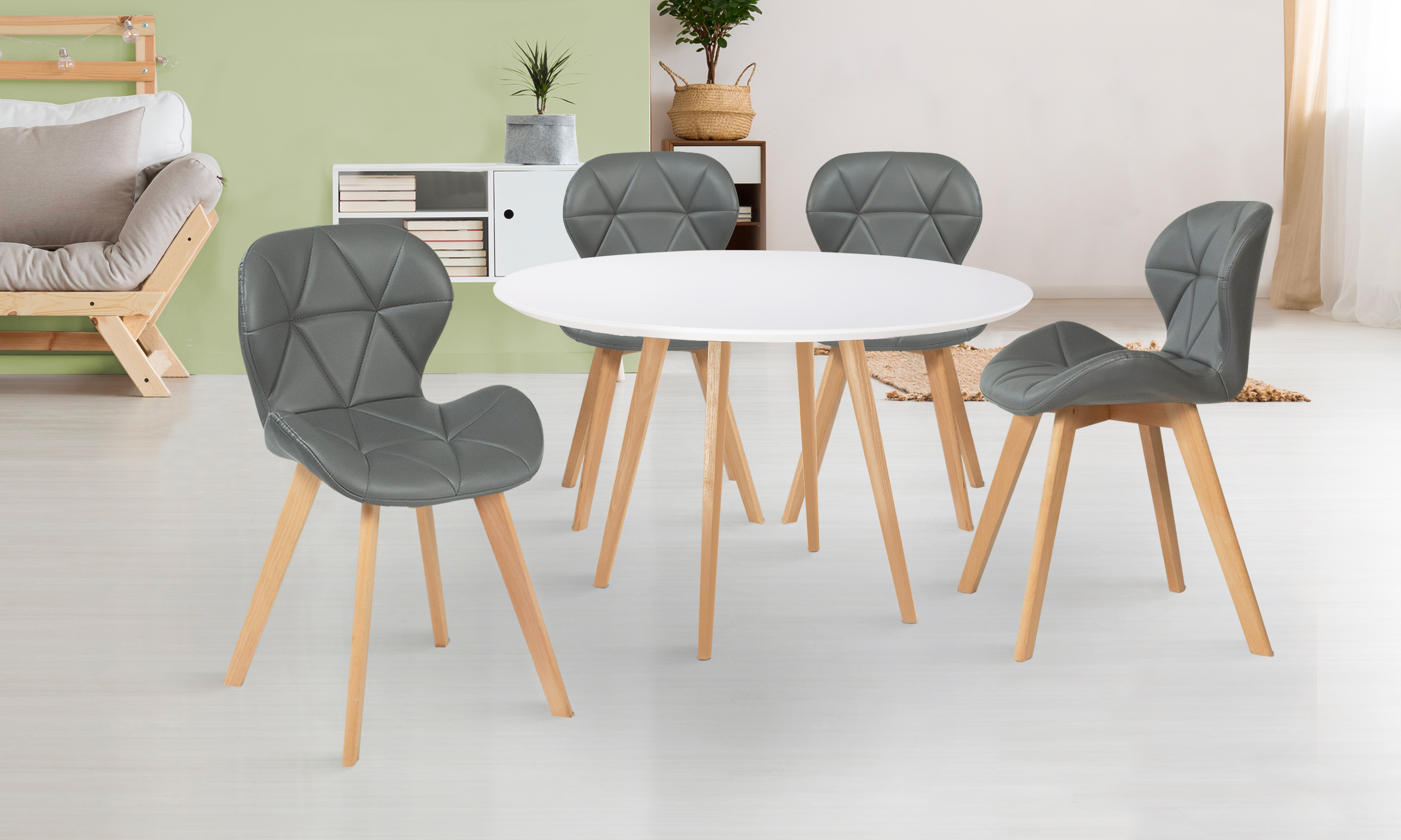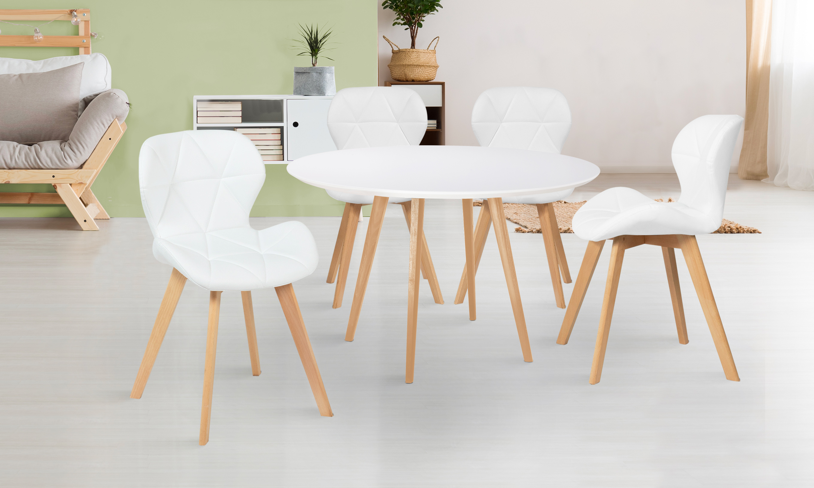 Lot de 4 chaises assise PU pieds bois massif NICKY