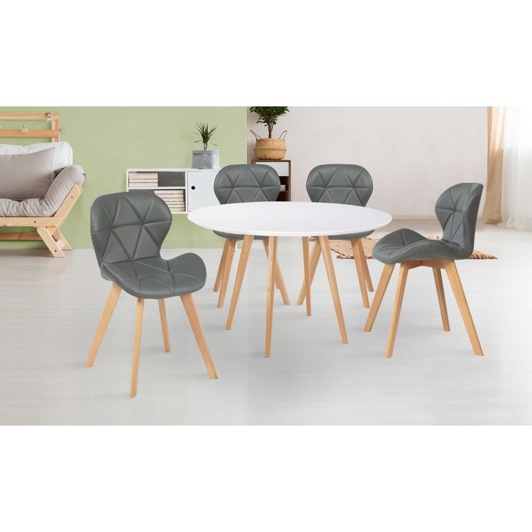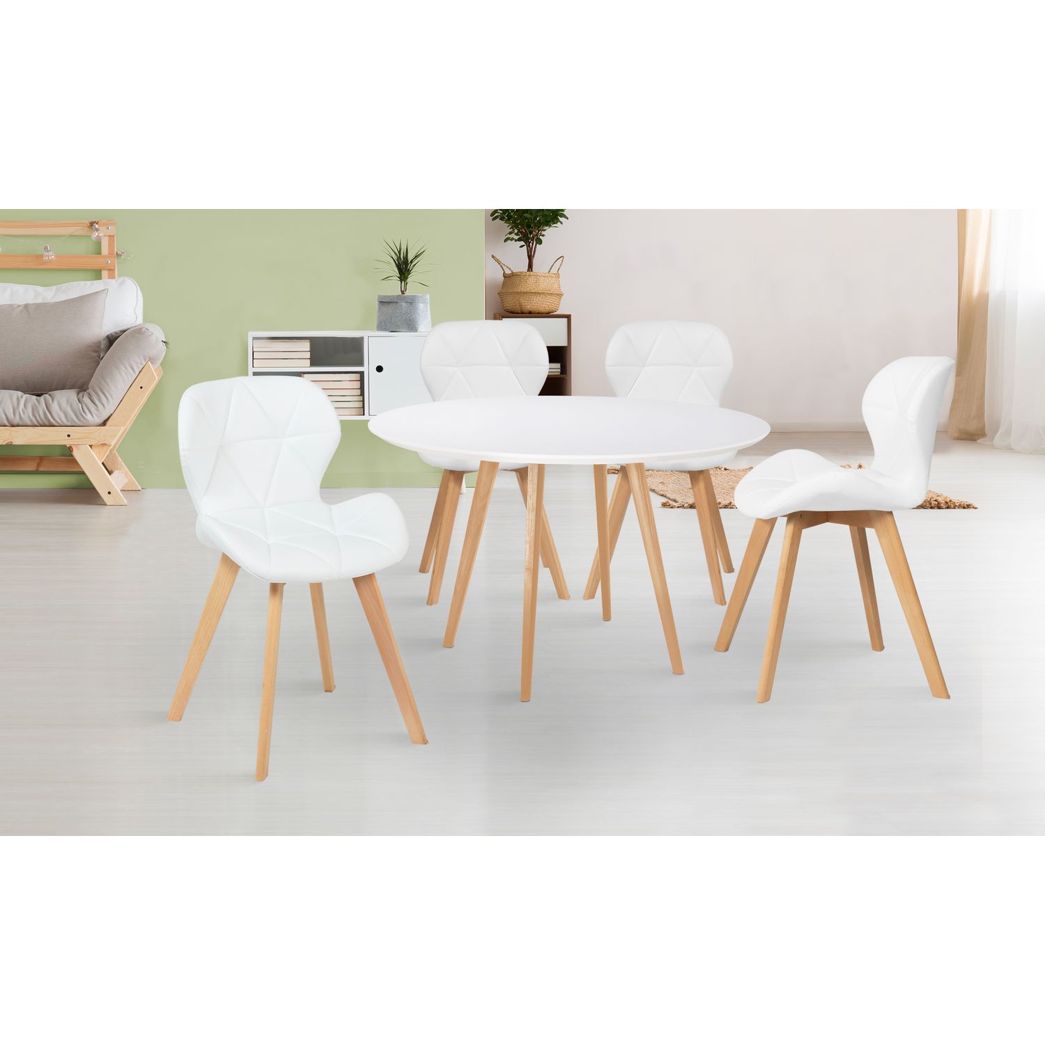 Lot de 4 chaises _Dimensions générales : 47.5x50x79cm _Hauteur d’assise : environ 48cm _Largeur totale d’assise : 47.5cm _Matériaux : _-pieds en bois de hêtre _-structure de l'assise en bois _-revêtement en similicuir (PU) _Poids du produit : 4.5kgs _A monter soi-même : oui _Visserie incluse : oui