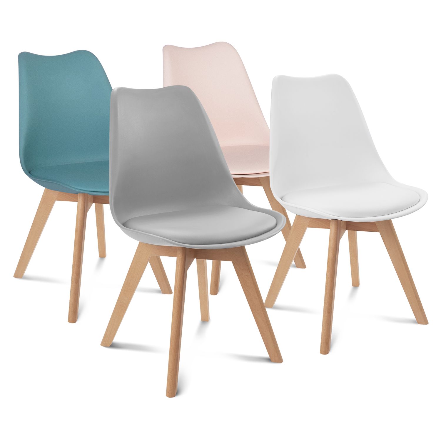 Lot de 4 chaises mix couleurs style scandinave pieds bois massif ODDA