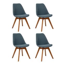 Informations Techniques : Dimensions : L. 55,2 x l. 48 x H. 79,5 cm Matières : Revêtement : Polyester Rembourrage : Mousse (Polyuréthane) Structure : Polypropylène Piètement : Bois (Hêtre) Spécificités : Intemporel & Tendance Lot de 4 chaises À monter soi-même Poids : 4,96 kg Couleur : Bleu
