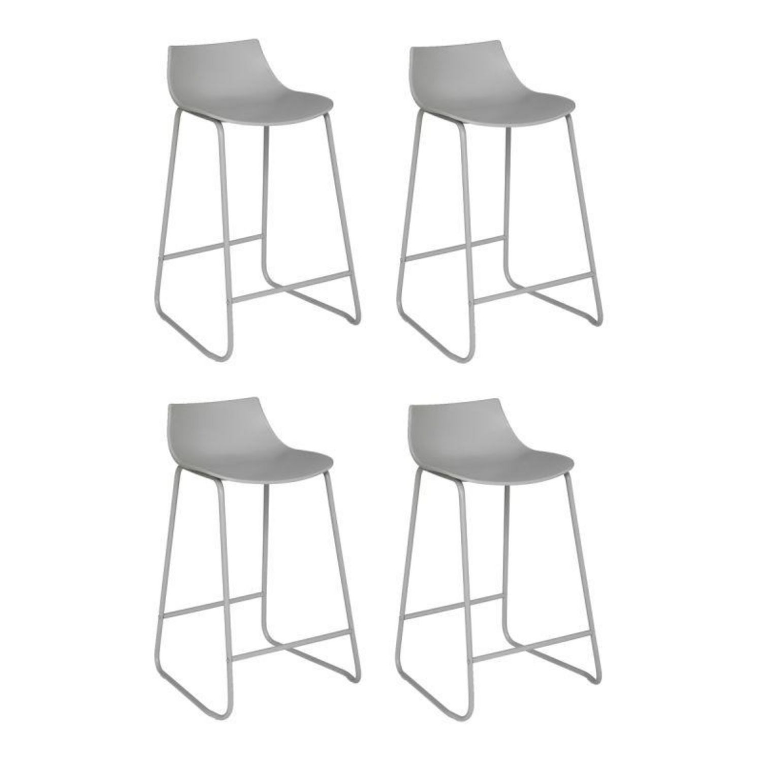 Informations Techniques : Dimensions : L. 47 x l. 48,5 x H. 82 cm Assise : H. 66 cm Repose-Pieds : H. 19 cm Matières : Polypropylène & Fer Spécificités : Pratique & Utile Lot de 4 Tabourets de Bar Avec Repose-Pieds Assise Confortable A monter soi-même Poids : 4,13 kg Couleur : Gris