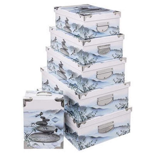 Lot de 6 Boîtes de Rangement Zen 48cm Bleu