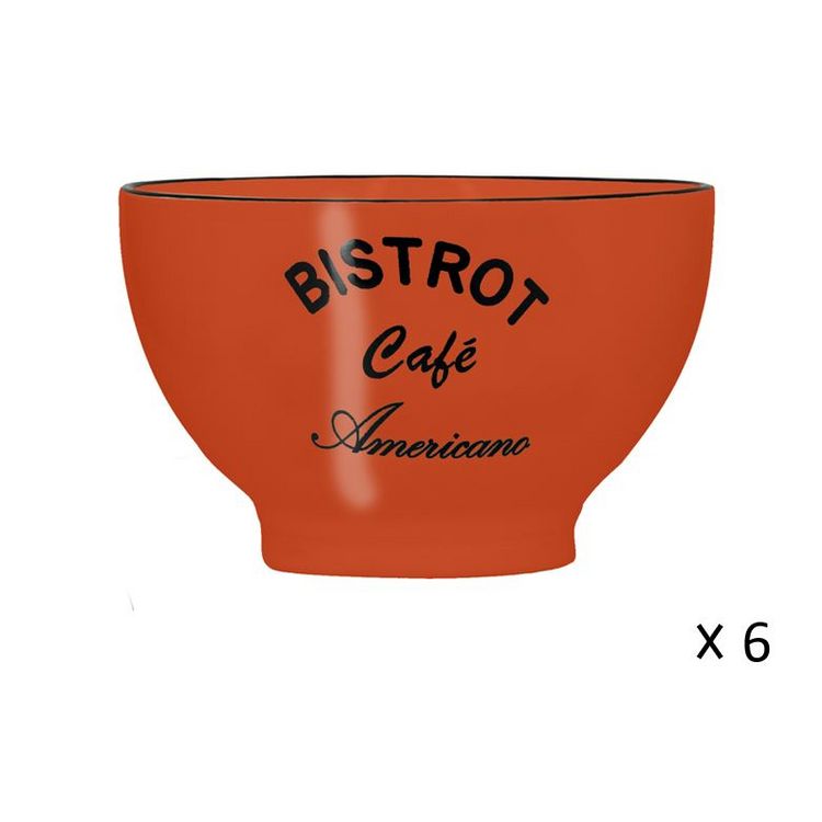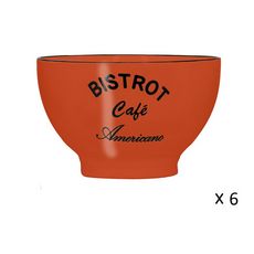 En savoir +Découvrez ce lot de 6 bols 50 cl (13 cm) BISTROT en grès couleur Orange. Retrouvez tout le charme et l'ambiance chaleureuse des bistrots avec cette tasse au look délicieusement rétro avec inscription "Chocolat Chaud". Compatible lave-vaisselle et micro-ondes.