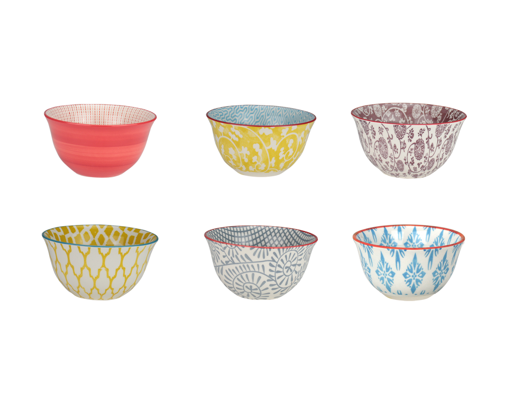 Lot de 6 bols motifs en céramique 11 cm (300 ml)