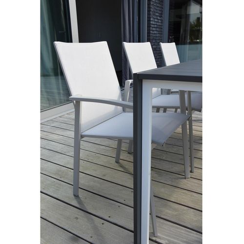 Pour plus de confort et robustesse, ce lot de 6 fauteuils de jardin est conçu en aluminium et textilène. Ses accoudoirs et sa hauteur d'assise de 45cm apporte tout le confort nécessaire pour un déjeuner en plein air. Empilable, ce lot de 6 chaises de jardin en aluminium textilène COSMOPOLITAN sont parfaits pour gagner de l'espace.