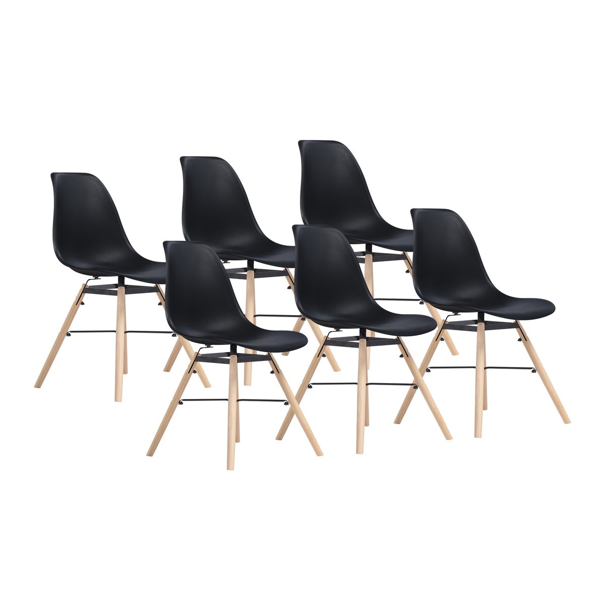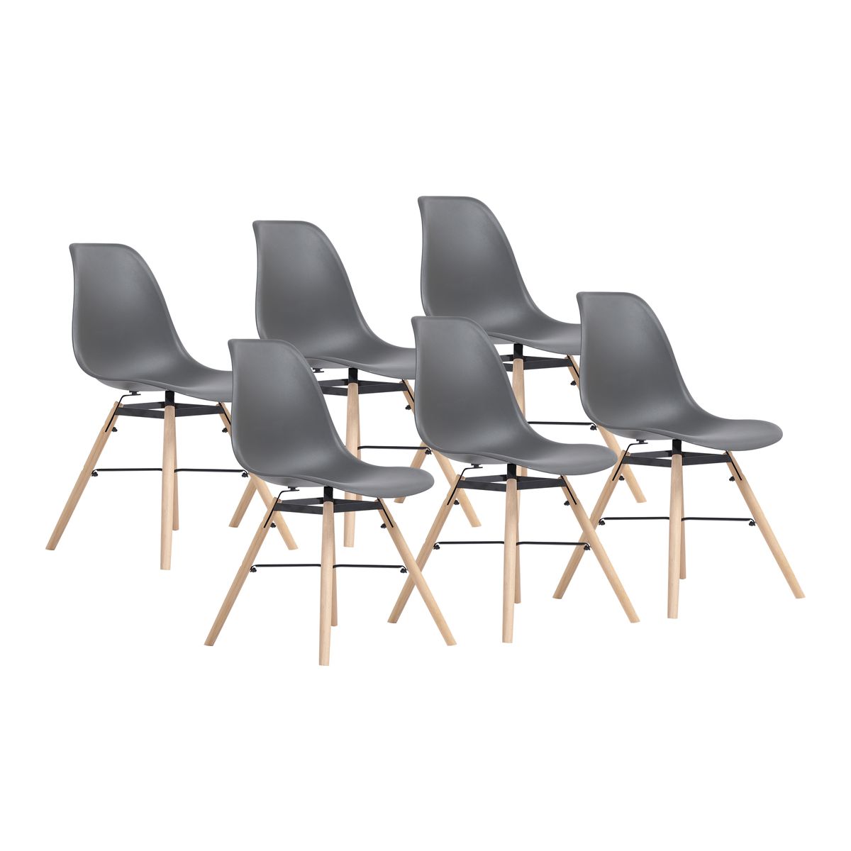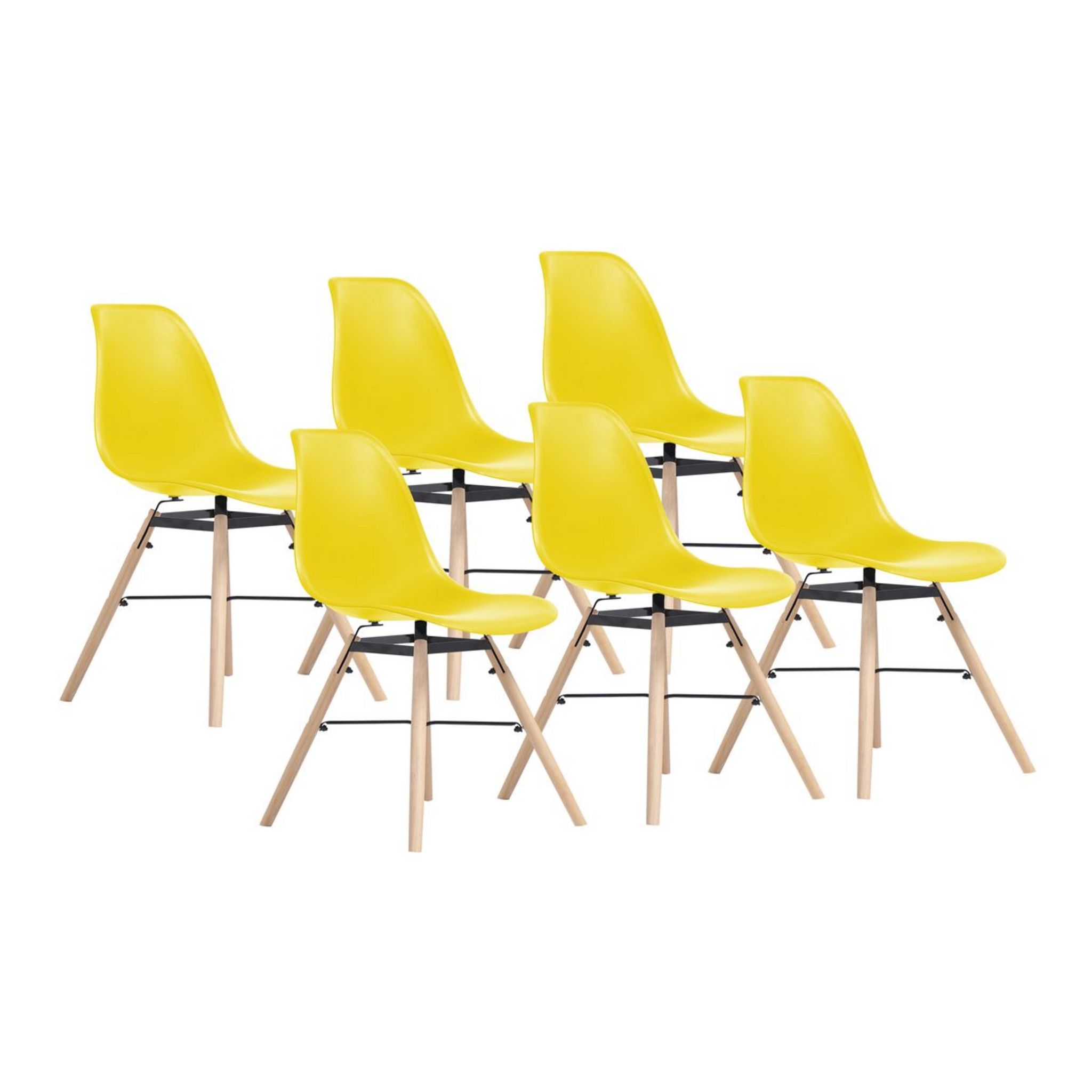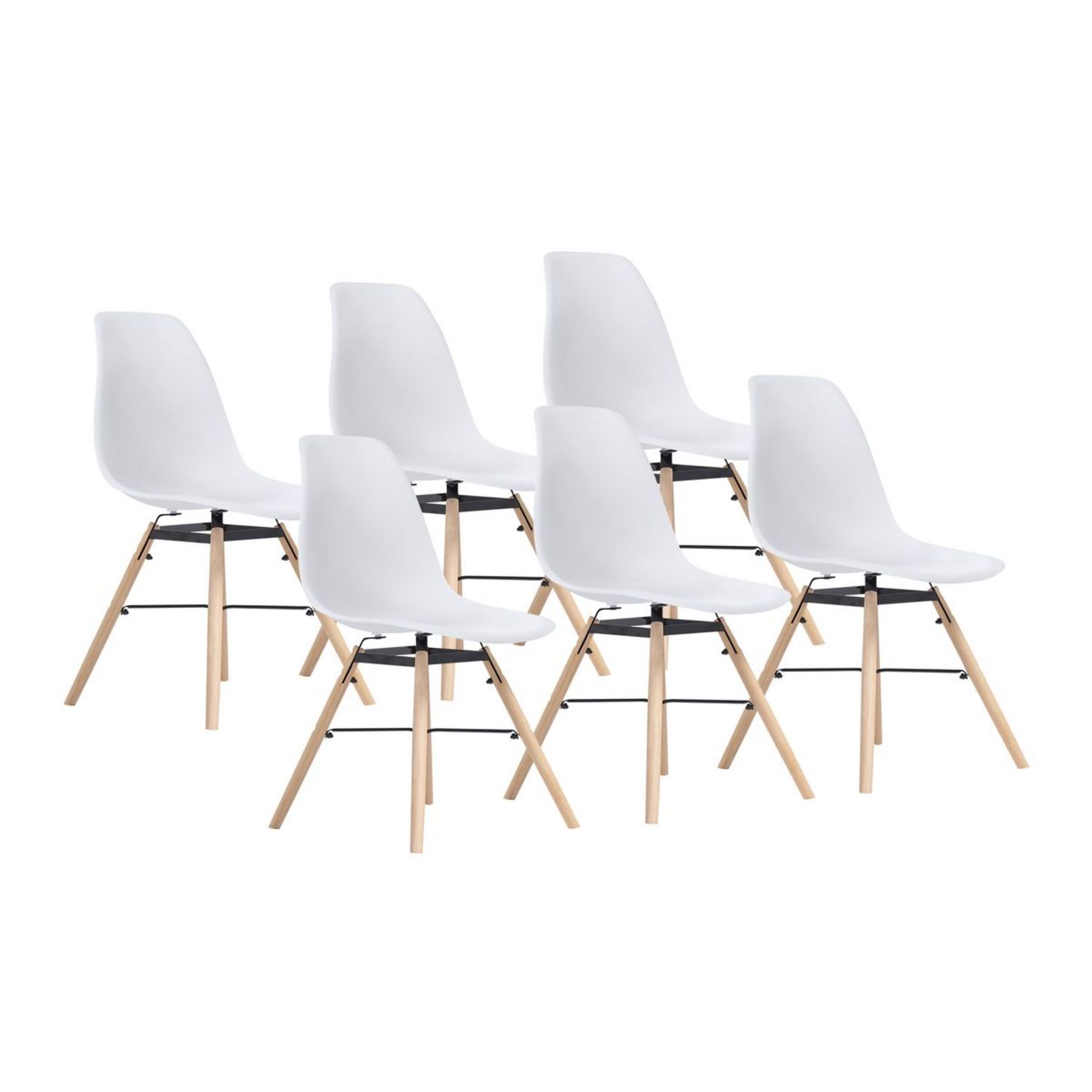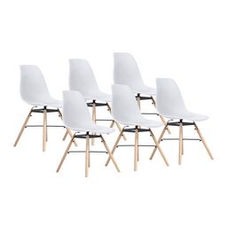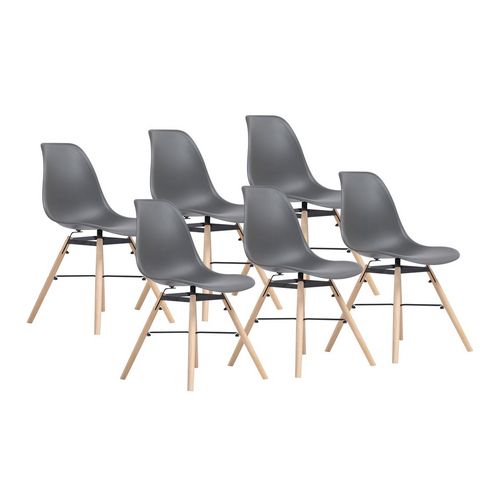 Lot : x6 Matériaux : Assise en polypropylène, pied en bois de hêtre Dimensions assise : Longueur : 40cm Largeur : 46,5cm Hauteur : 43,5cm Hauteur d'assise: 43cm Dimensions pieds : Longueur : 41cm Diamètre : 2,5cm Dimensions dossier : Hauteur : 40cm Largeur bas : 44cm Largeur Haut : 25cm Dimensions globales : Hauteur : 79,5cm Largeur : 46,5cm Longueur : 54cm Poids : 3.6KG