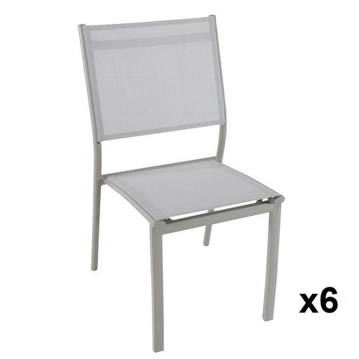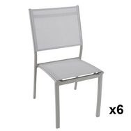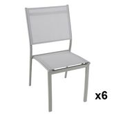 Ce lot est composé de 6 chaises CLARA coloris taupe. Conçues en aluminium et textilène, ces chaises ne demandent que très peu d'entretien et sont confortables. De dimensions 59x56x88 cm, la chaise CLARA apporte tout le confort nécessaire pour profiter d'agréable moment en plein air ! A associer sans hésiter avec la table TEMPO ou VITTAL pour créer un élégant salon de jardin.
