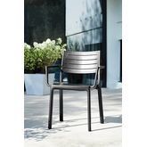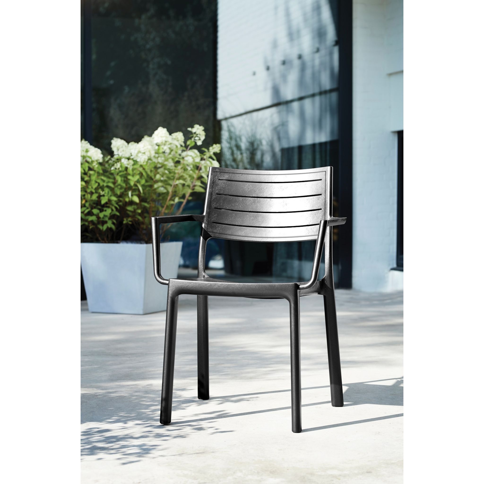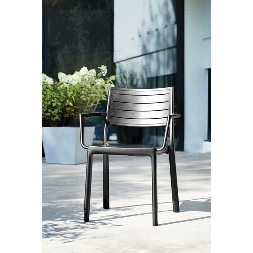 Lot de 6 Fauteuils empilables en résine de synthèse (polypropylène - Caco3), dossier lattes imitation fer forgé coloris graphite